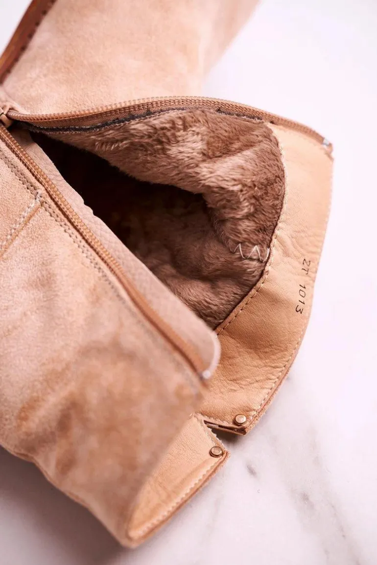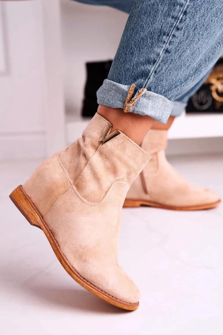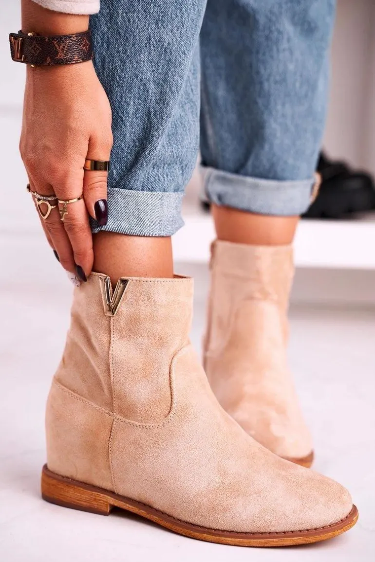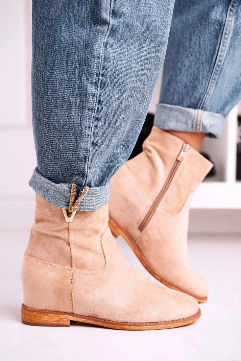 Damskie Botki Na Koturnie Zamszowe Beżowe Vanya