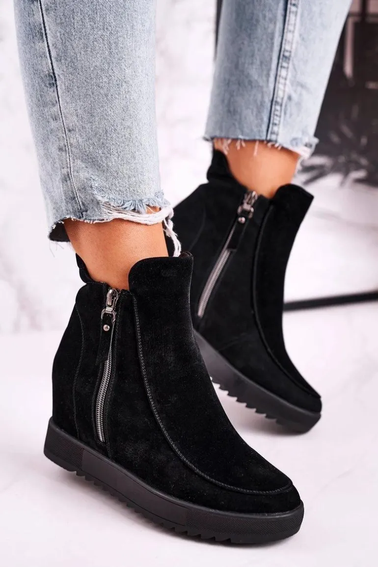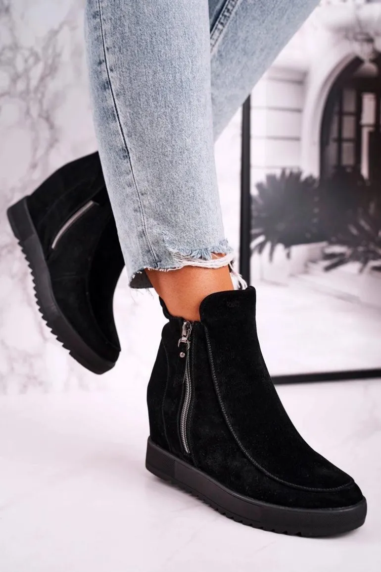 Damskie Botki Na Koturnie Zamszowe Czarne Silvia