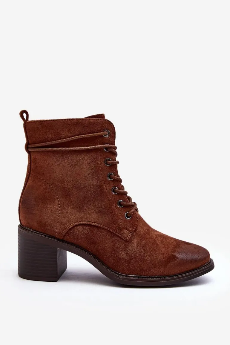 Stylowe i wygodne botki damskie z eko zamszu to idealny wybór na chłodniejsze dni. Niski obcas w postaci słupka sprawia, że są one komfortowe w użytkowanie. Model ten posiada praktyczny suwak, ułatwiający zakładanie oraz dodatkowe sznurowanie. Noski zaokrąglone. Ocieplenie kocem obuwniczym zapewnia ciepło podczas jesienno-zimowych dni. Te botki to doskonałe uzupełnienie wielu stylizacji! Przy wyborze rozmiaru prosimy sugerować się tabelą rozmiarów.