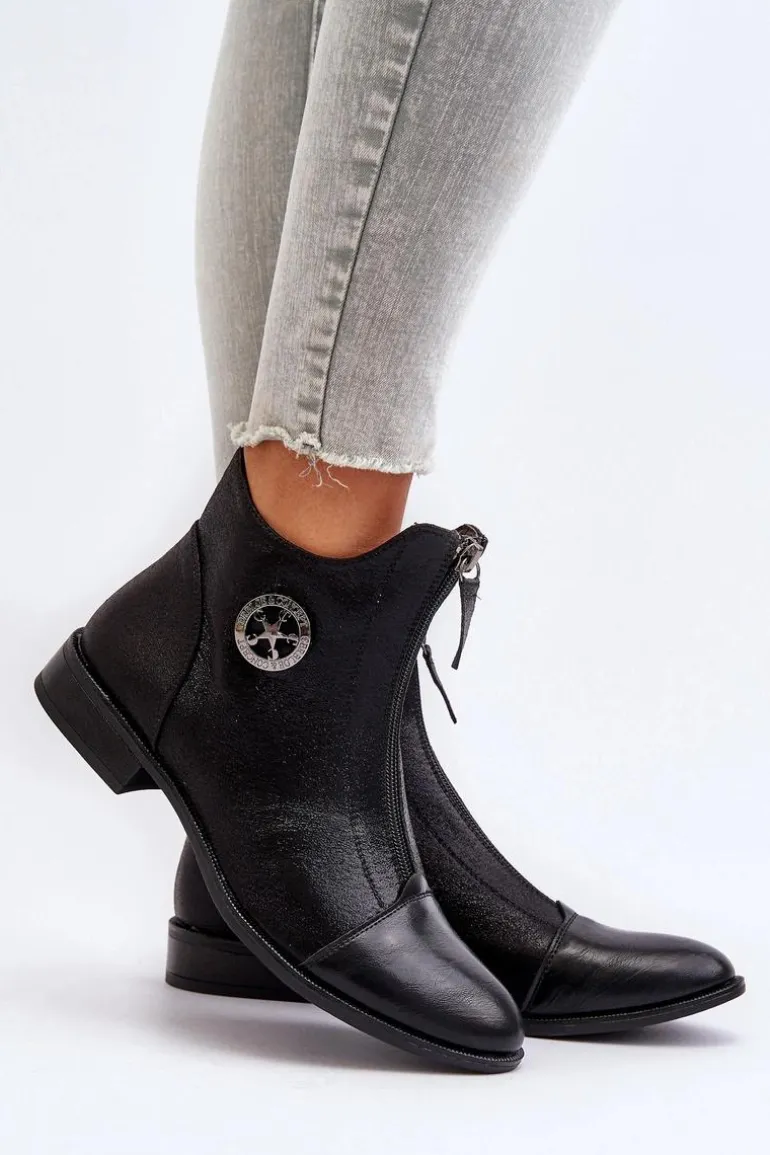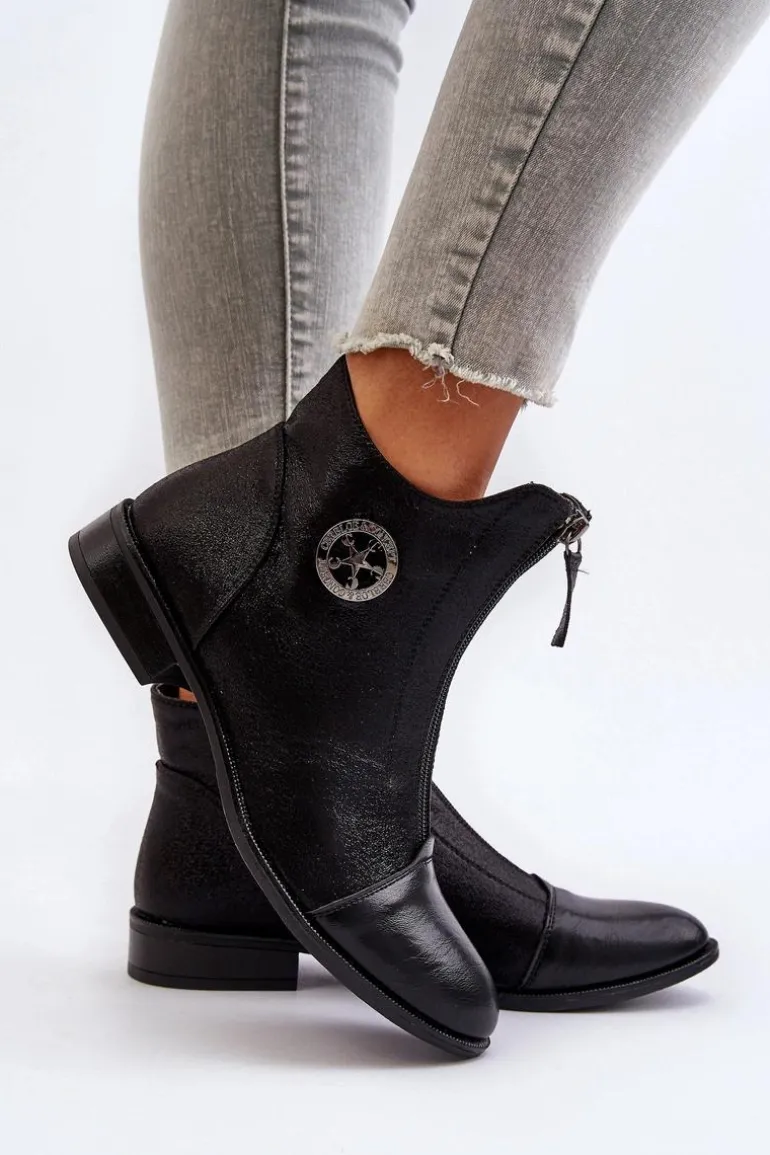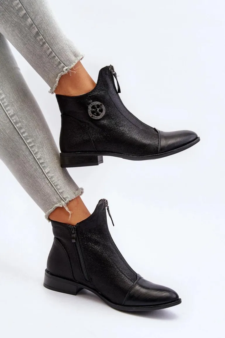 Damskie Botki Na Płaskim Obcasie Z Zamkiem Czarne Loratie