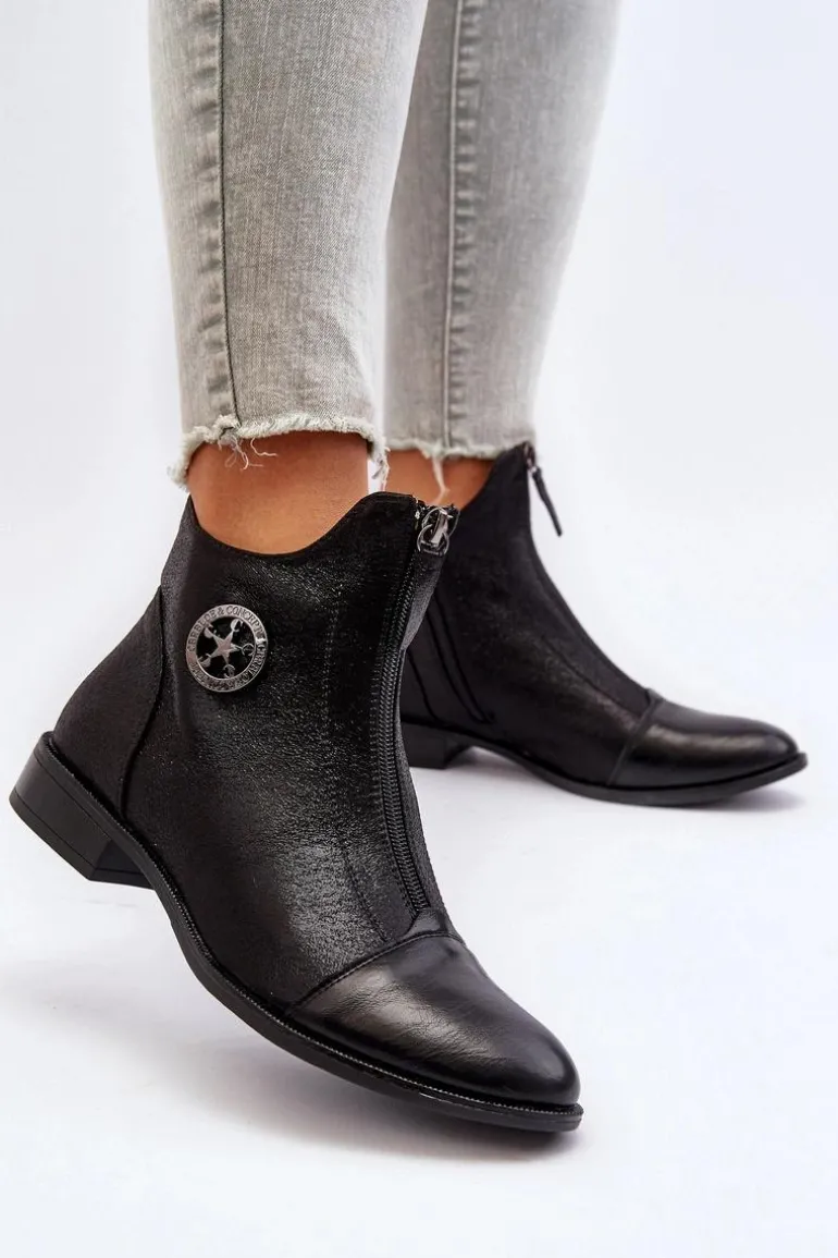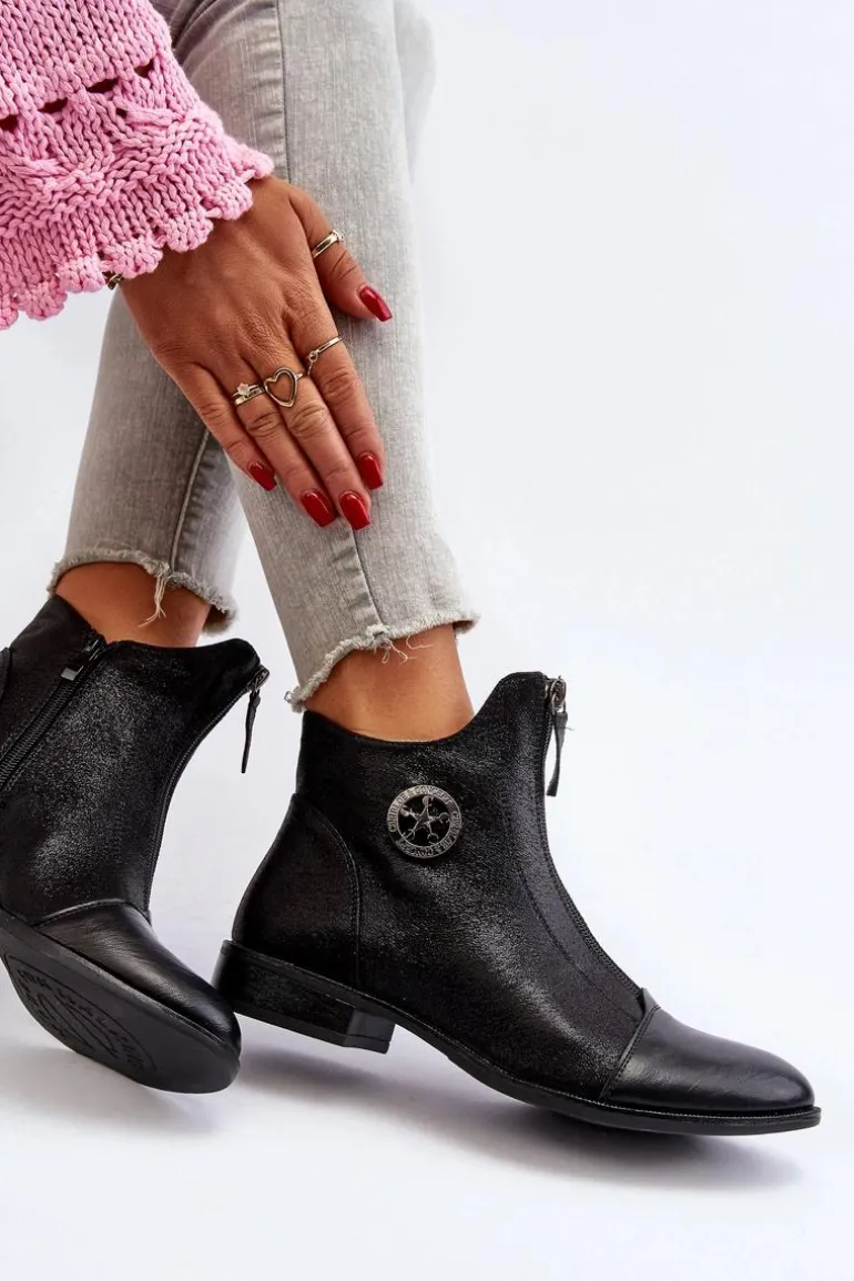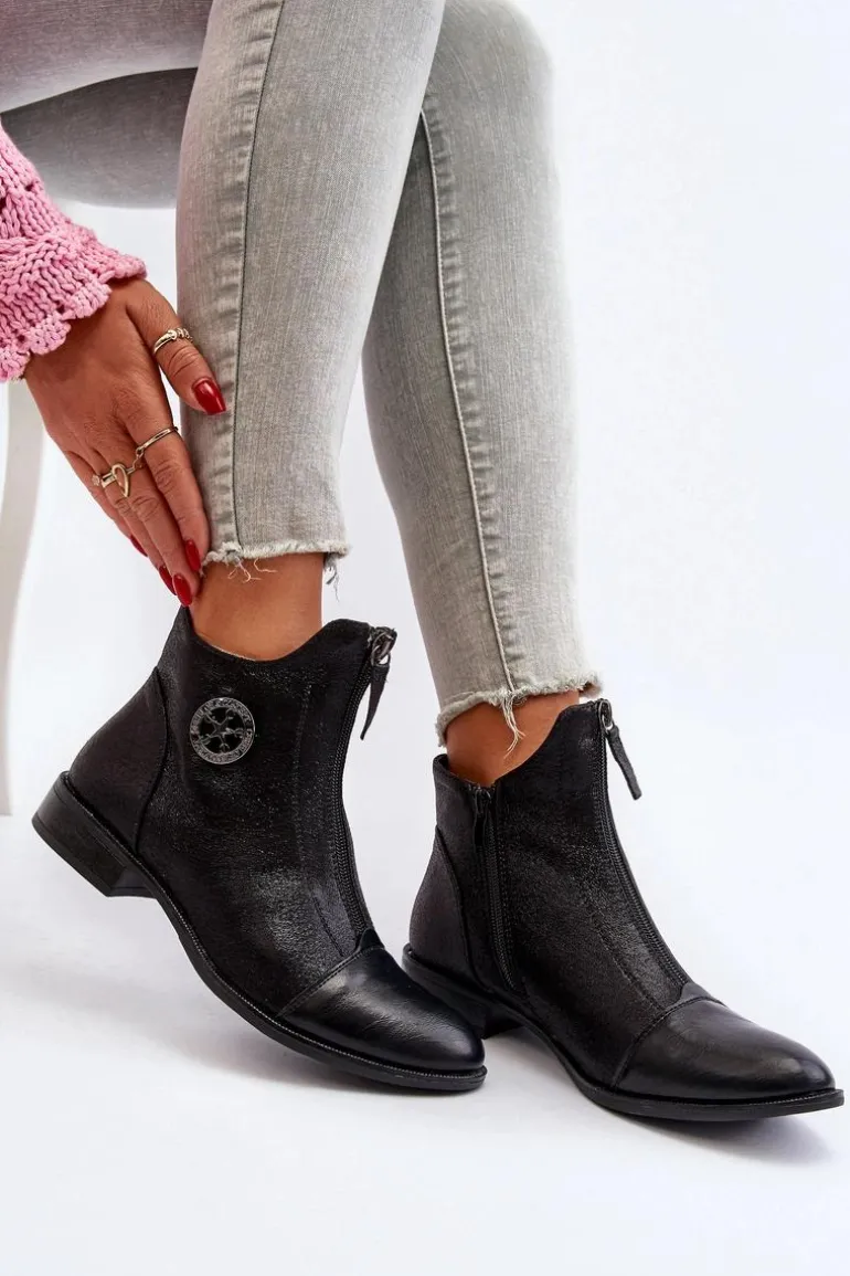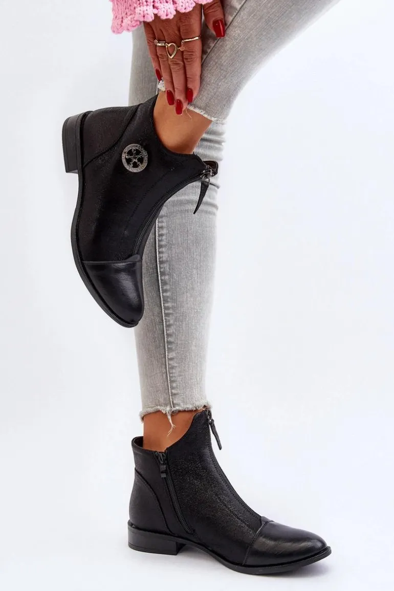 Damskie Botki Na Płaskim Obcasie Z Zamkiem Czarne Loratie