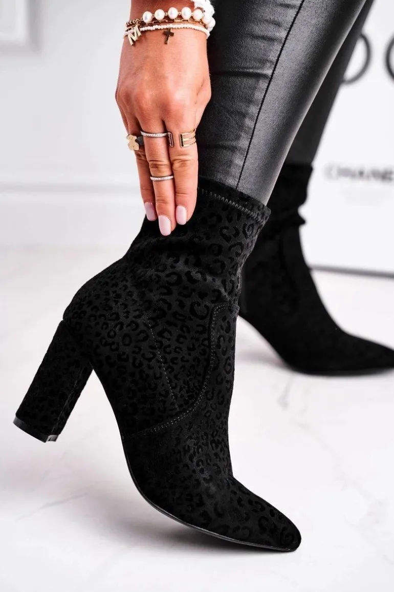 Damskie Botki Na Słupku Cętki Czarne Panther