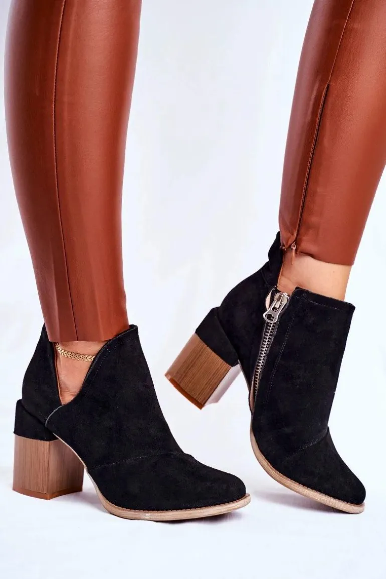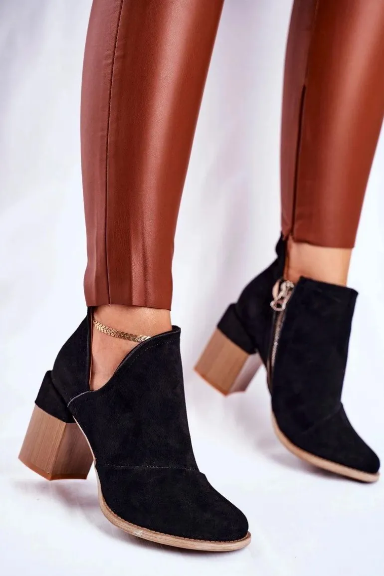 Damskie Botki Na Słupku Czarne Wycięte Meliori