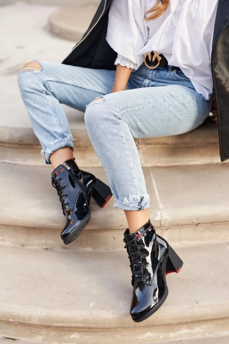 Damskie Botki Na Słupku Lakierowane Czarne Do It Better