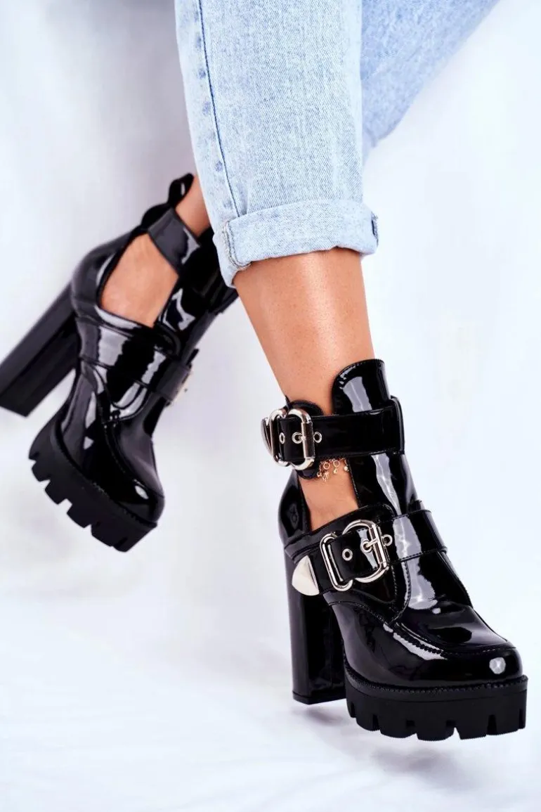 Damskie Botki Na Słupku Lakierowane Czarne Rock Time!