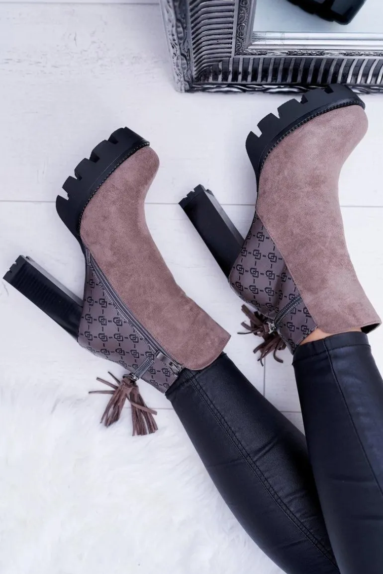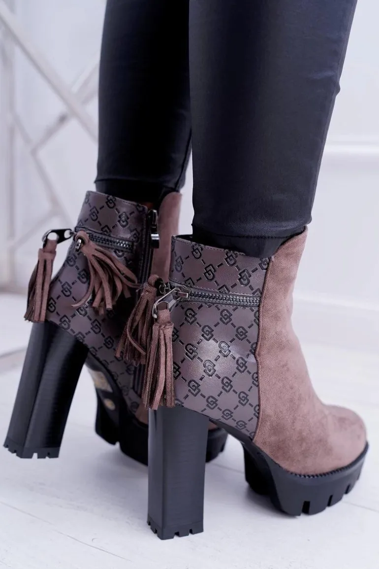 Damskie Botki Na Słupku Lu Boo Ciepłe Coffe Milky Way
