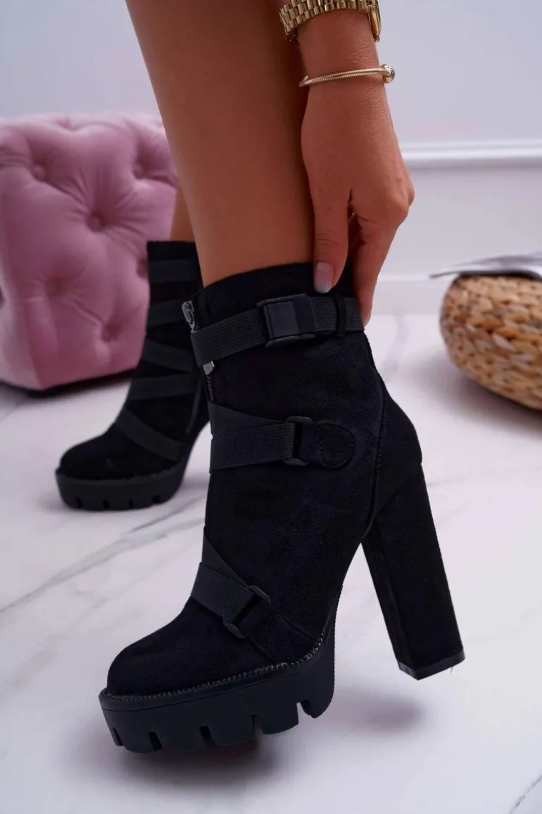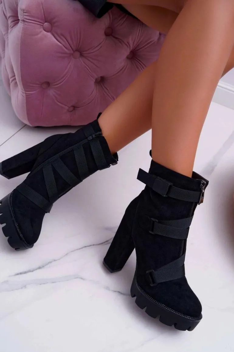 Damskie Botki Na Słupku Ocieplane Czarne Zamszowe Guiness
