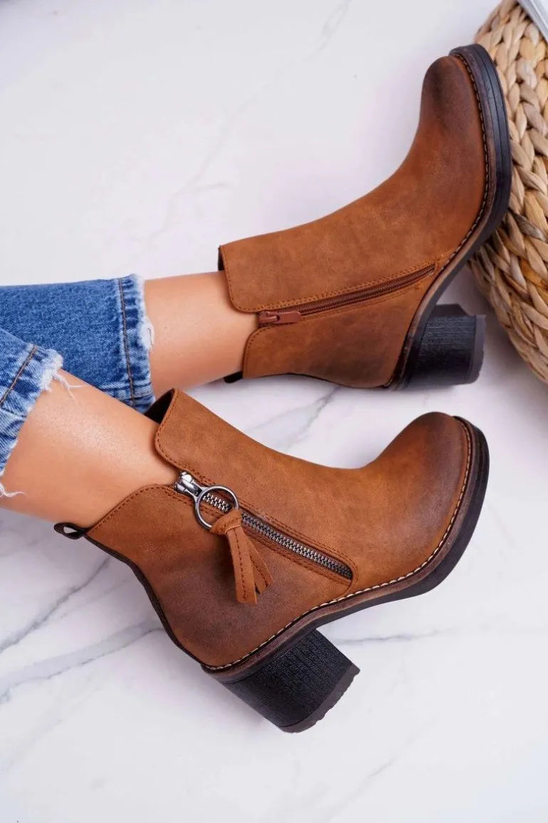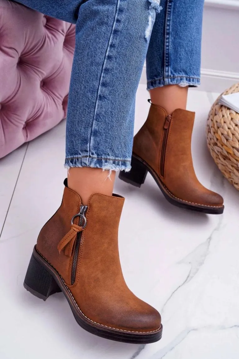 Damskie Botki Na Słupku Ocieplane Filcem Camel Delia
