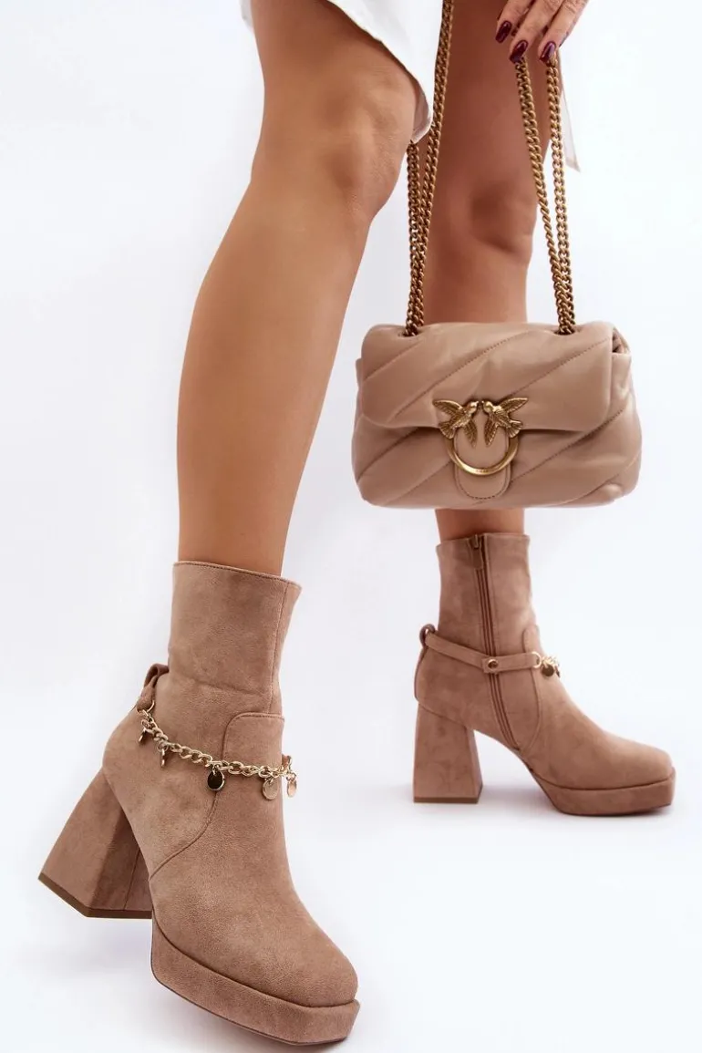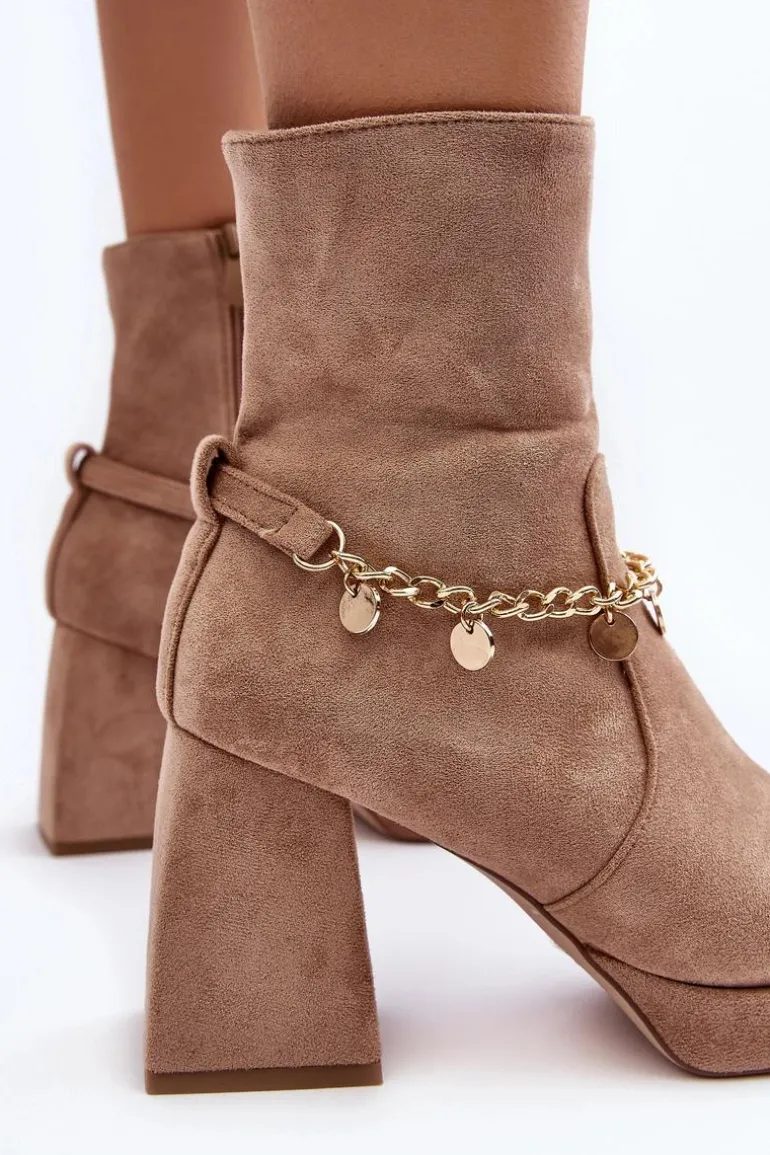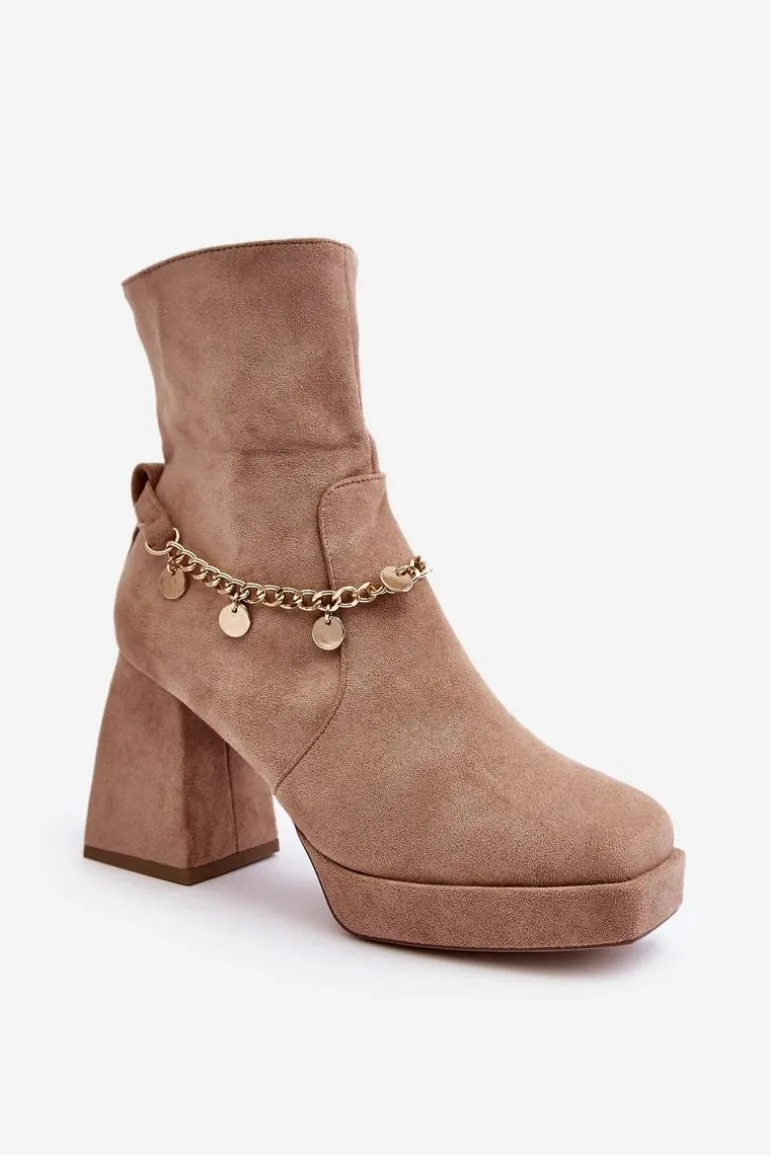 Damskie Botki Na Słupku Z Łańcuszkiem Beżowe Tiselo