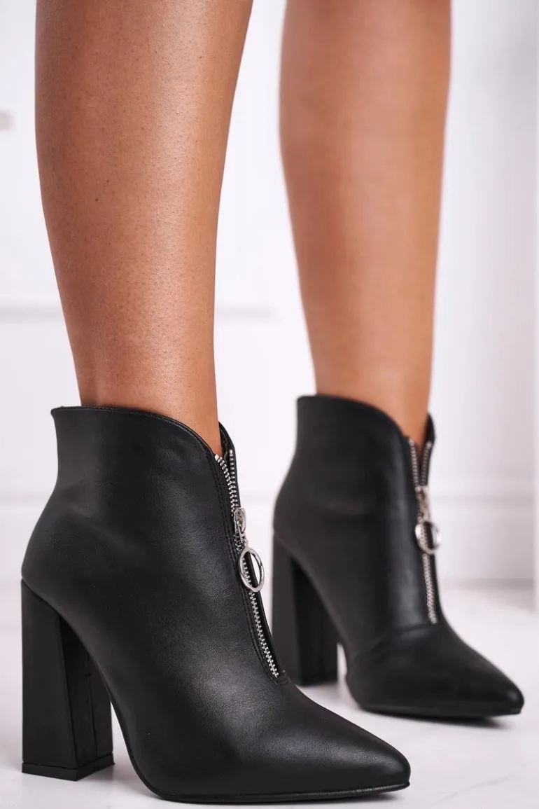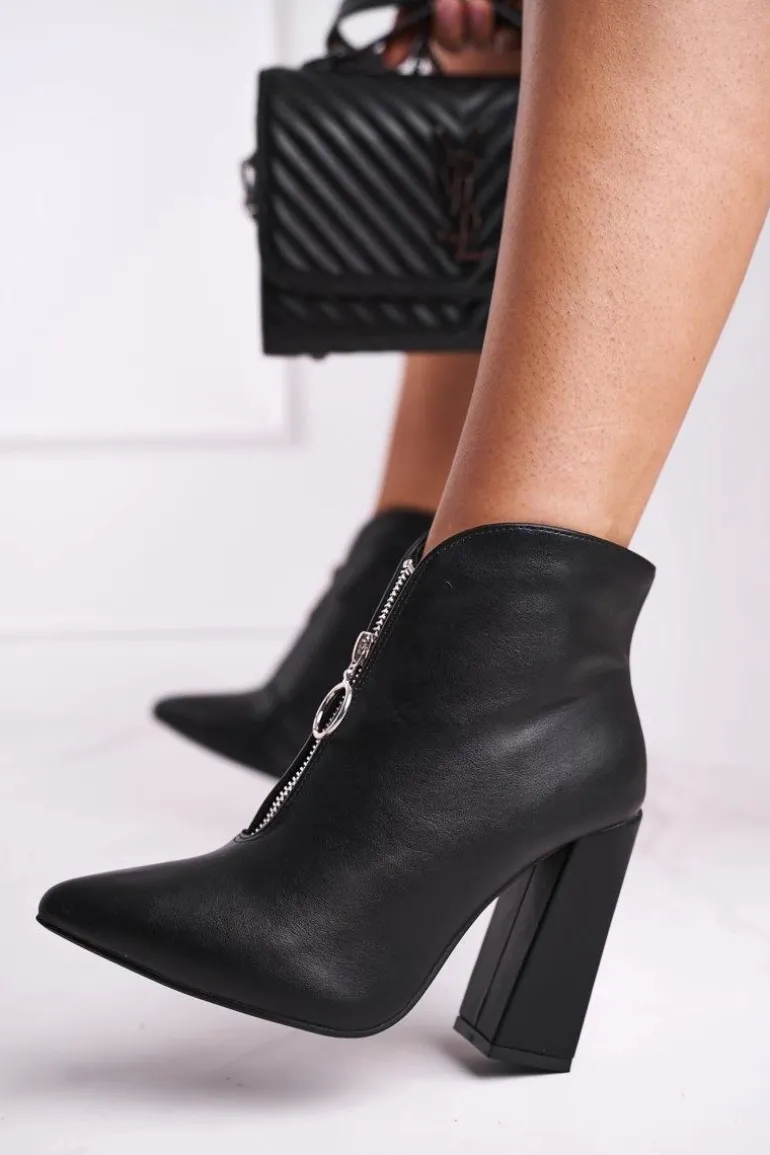 Damskie Botki Na Słupku Zamek z Przodu Czarne Save Me