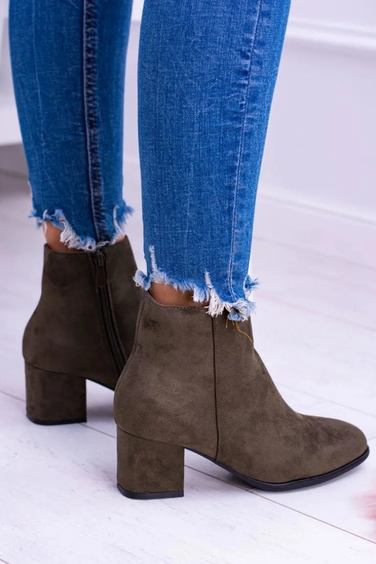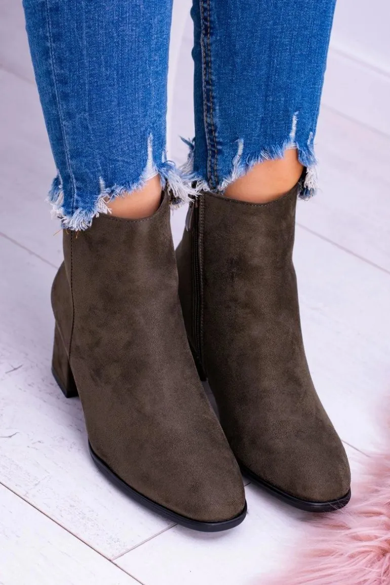 Damskie Botki Na Słupku Zamsz Khaki Ferimate