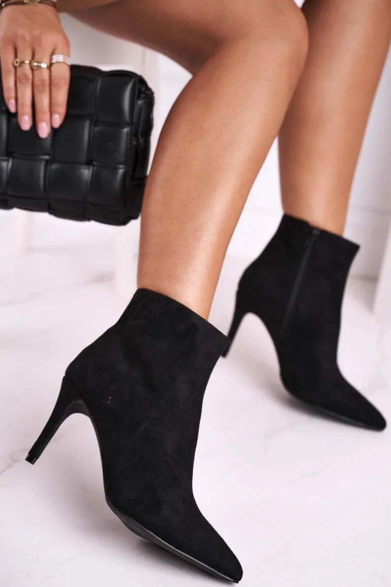 Damskie Botki Na Szpilce Zamszowe Czarne Beneco