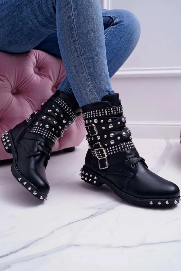 Wydawałoby się że już nic cię nie zaskoczy, a jednak! Nasza kolekcja nigdy nie przestaje zaskakiwać, tym razem przygotowaliśmy dla Was botki w rockowym stylu! Czarny kolor pozwoli ci na maksimum możliwości dobierania stylizacji. Oprócz koloru, który wpasuję się w każde trendy, podkreślą one twój mocny charakter! Postaw na mocny styl! Przy wyborze rozmiaru prosimy kierować tabelą rozmiarów.