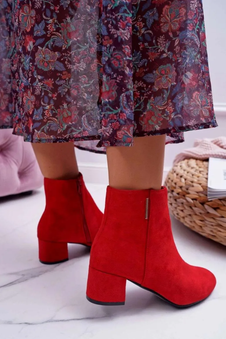 Damskie Botki Ocieplane Czerwone Fiorelli