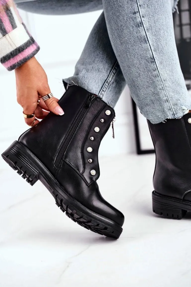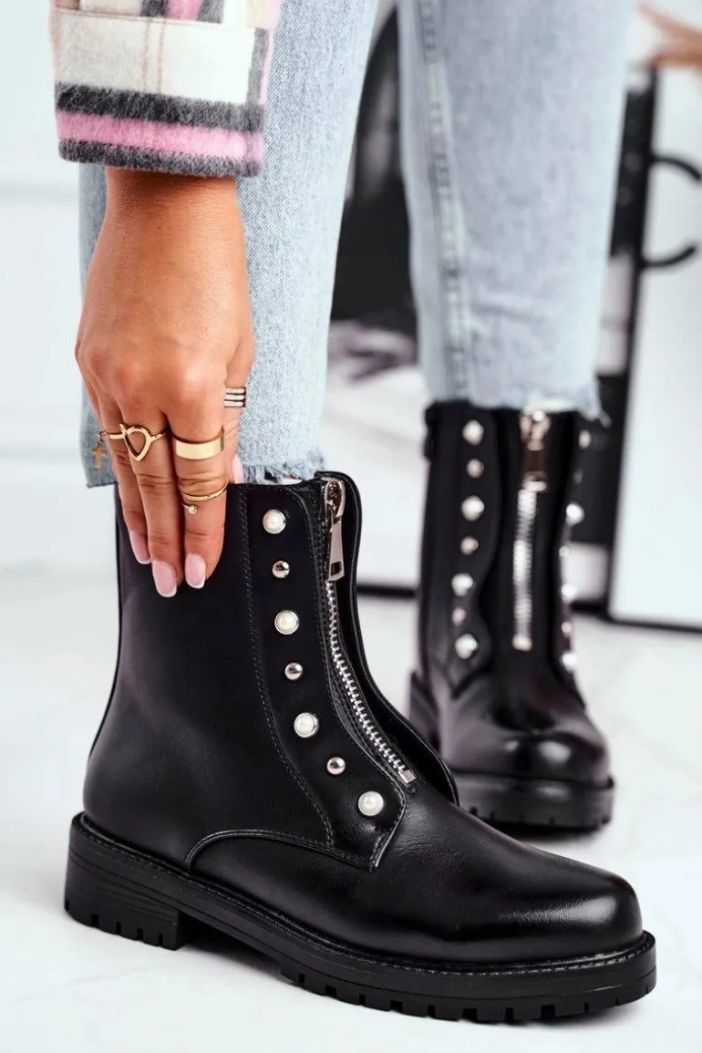 Damskie Botki Ocieplane Suwak z Przodu Czarne Hypnotized