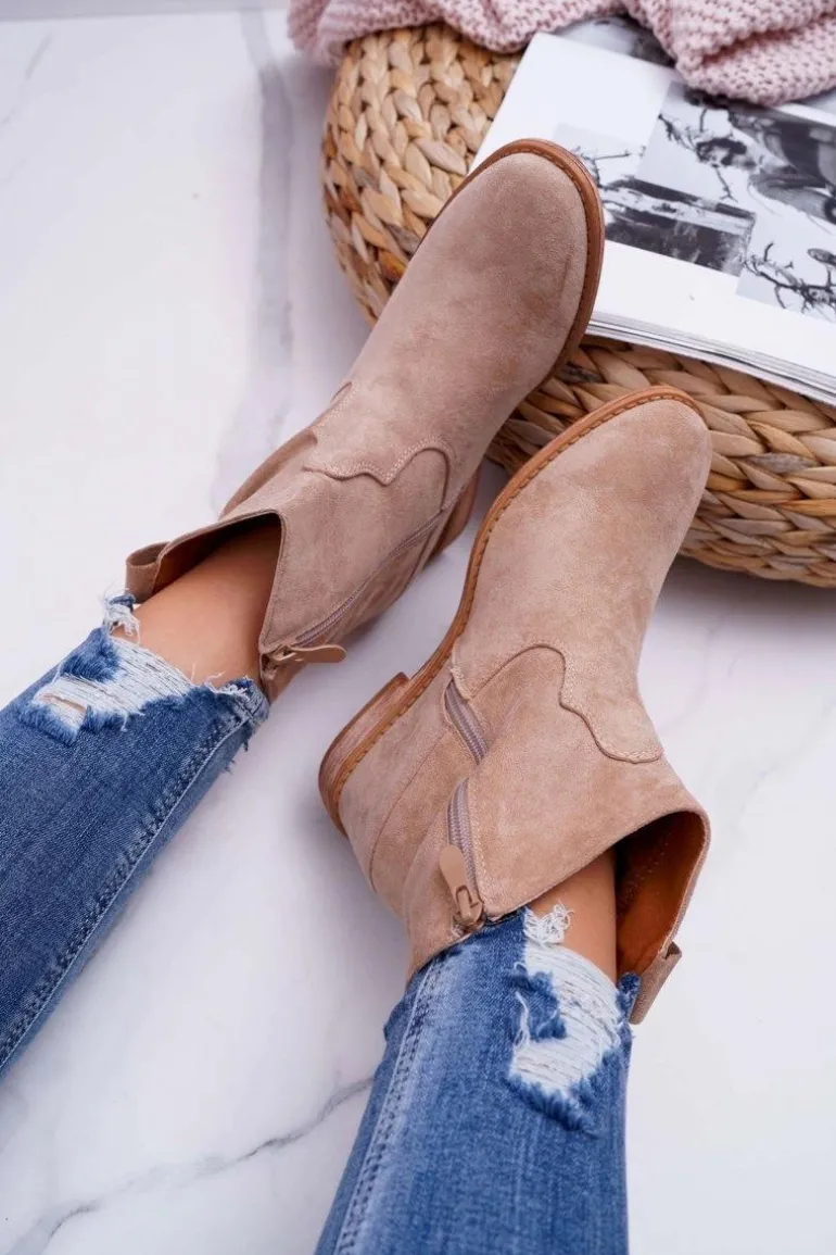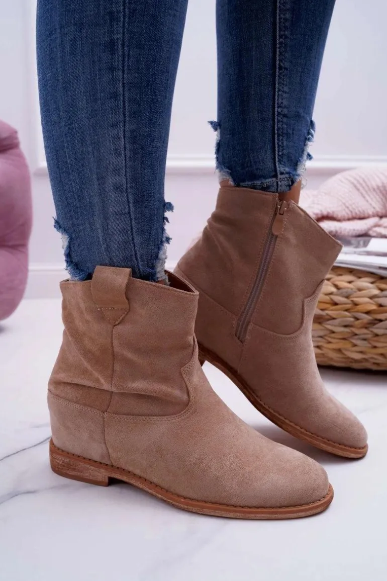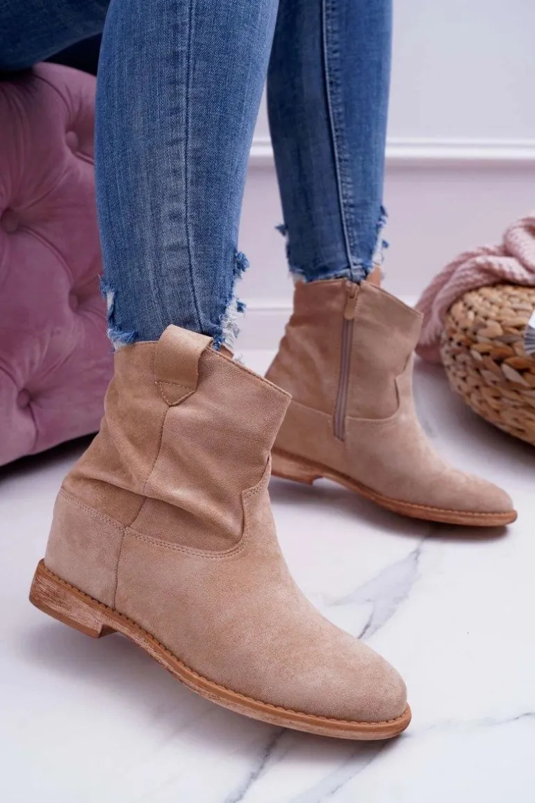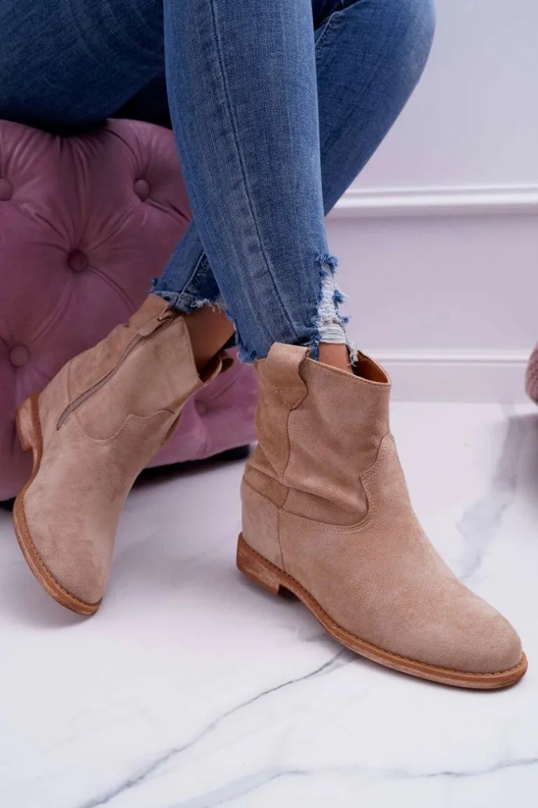 Damskie Botki Saszki Na Koturnie Beżowe Ellen