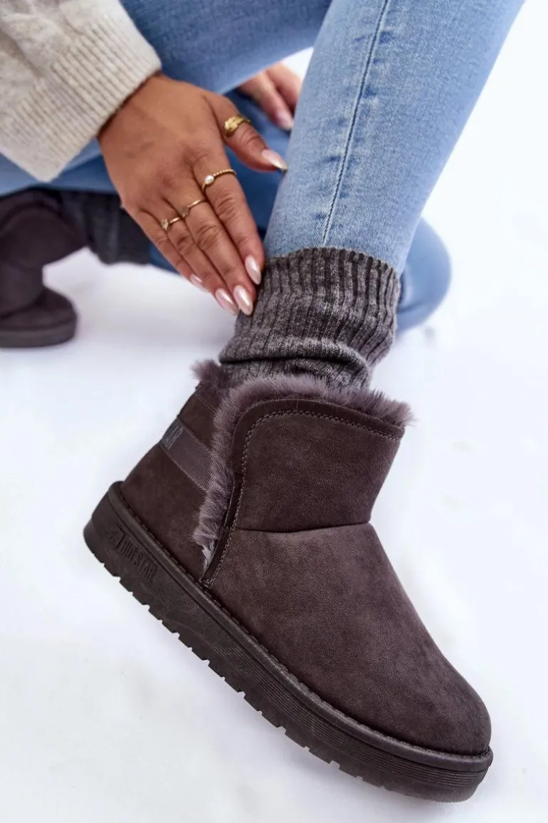 Śniegowce marki Big Star świetnie sprawdzą się w sezonie zimowym. Wykonane z materiału tekstylnego. Posiadają platformę, która świetnie odizoluje od podłoża. Śniegowce zostały ocieplone miłym w dotyku futerkiem. Nieregularna cholewka świetnie wpasuje się w stylizacje ze spodniami. Botki te posiadają ozdobny pasek z tyłu cholewki z logo marki Big Star. Przy wyborze rozmiaru prosimy sugerować się tabelą rozmiarów.