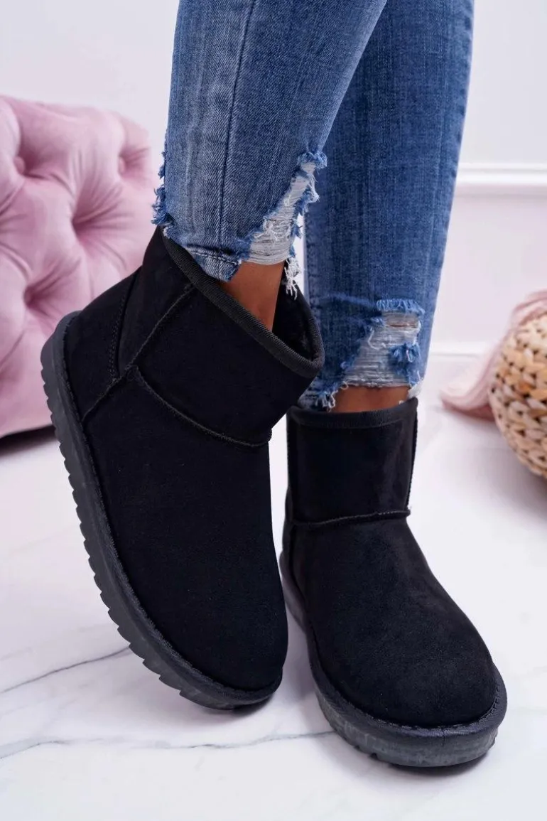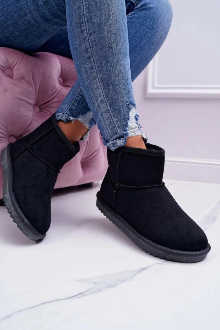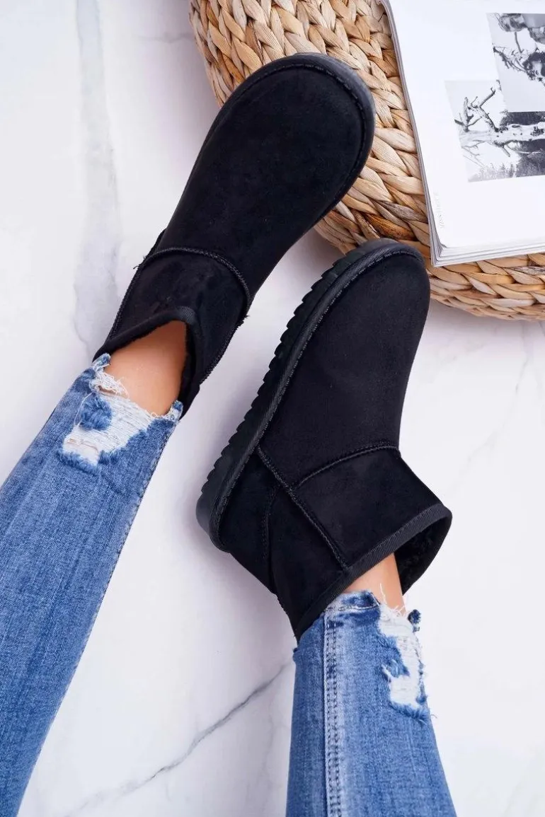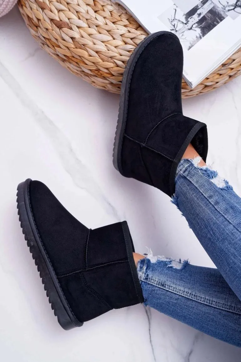 Damskie Botki Śniegowce Ocieplane Czarne Borneo
