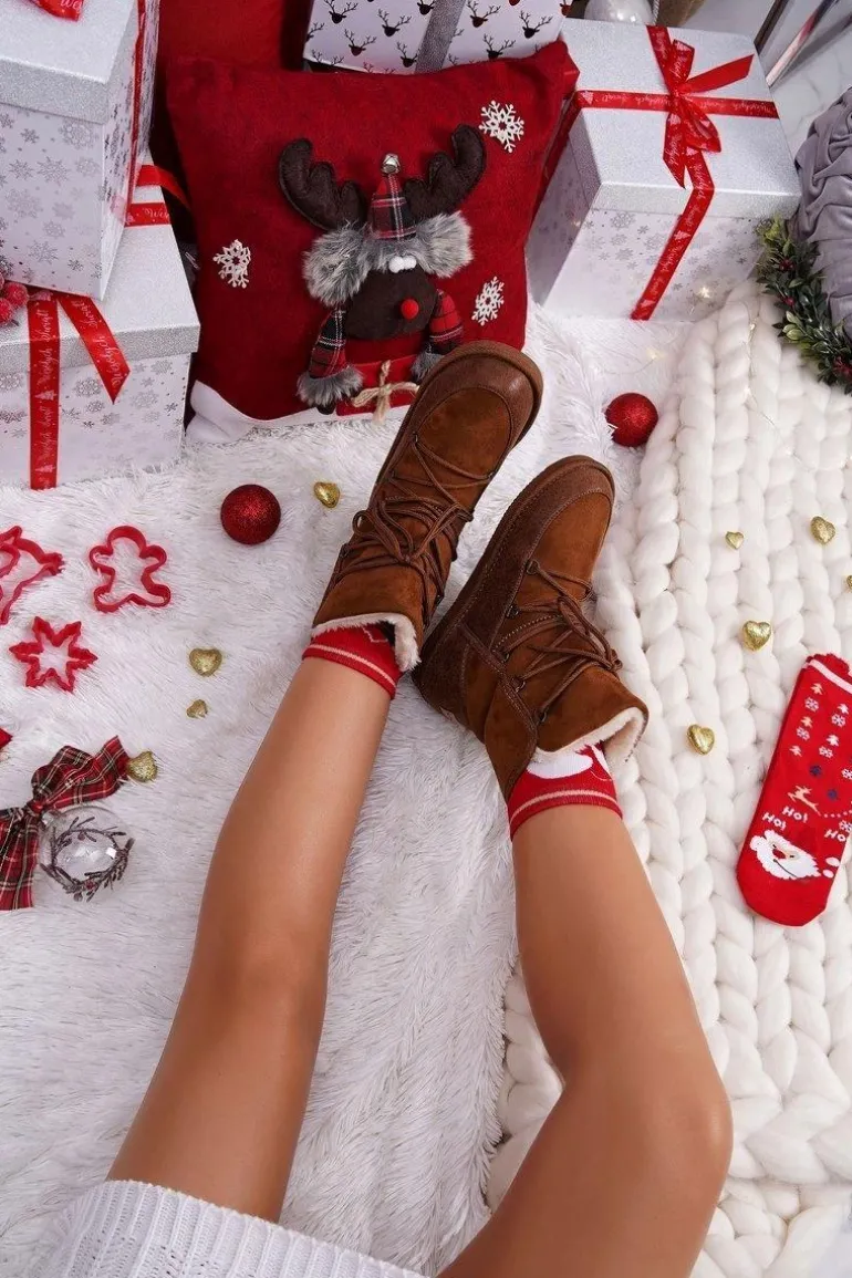 Damskie Botki Śniegowce Ocieplane Futerkiem Camel Ilana
