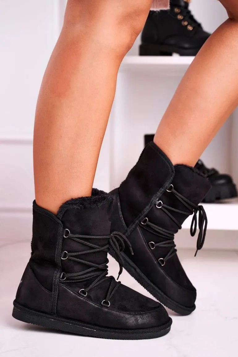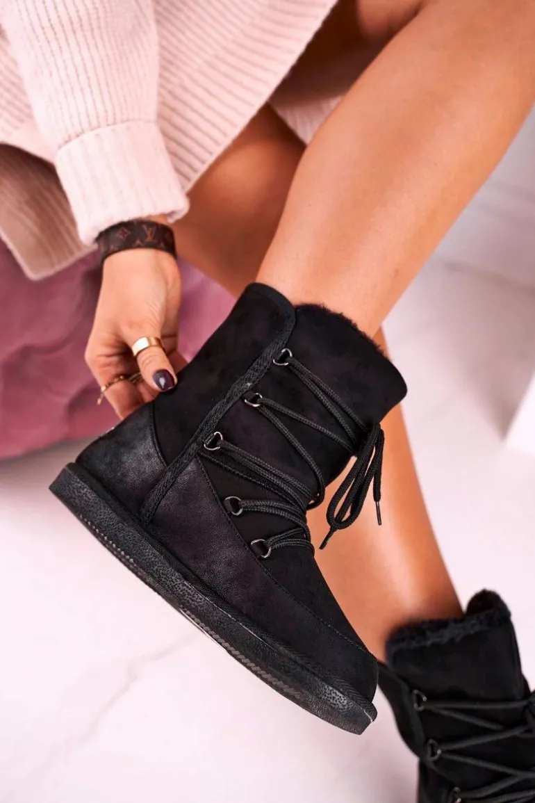 Damskie Botki Śniegowce Ocieplane Futerkiem Czarne Ilana