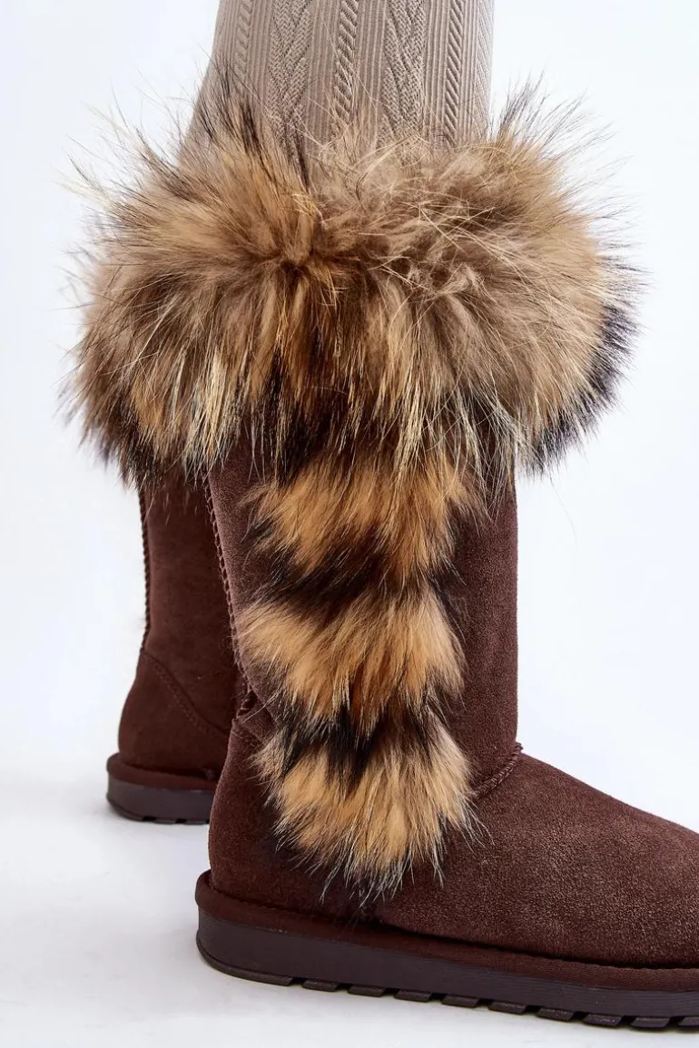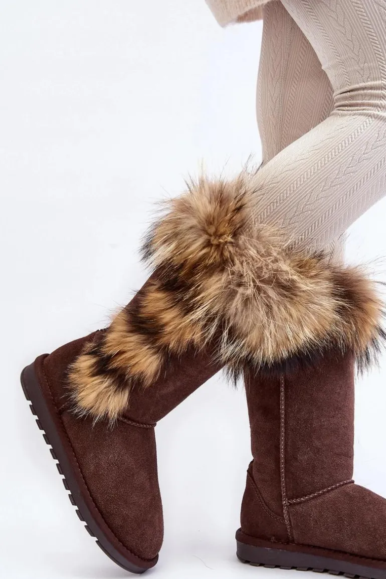 Damskie Botki Śniegowce Ocieplane Zamszowe Brązowe Balvin