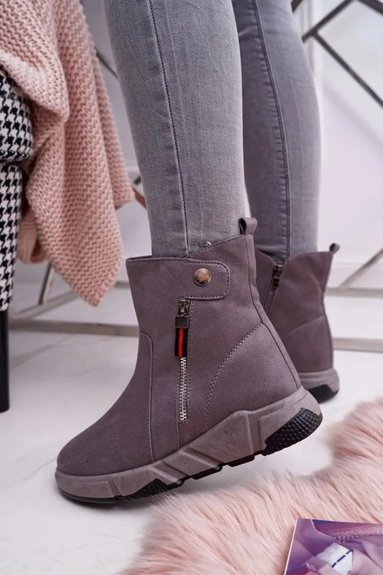 Damskie Botki Sportowe Ocieplane Szary SJ1938 Nefera