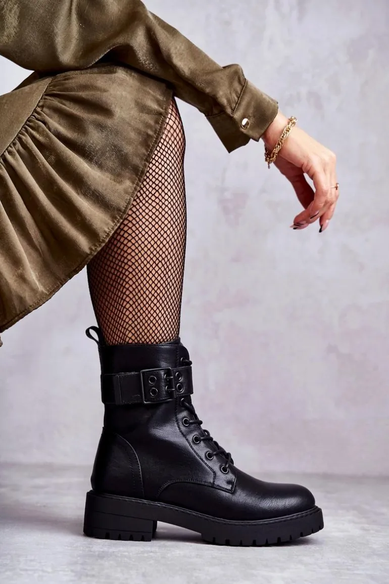 Modne botki damskie zostały wykonane z eko skóry. Posiadają suwak na boku cholewki, sznurowanie oraz klamrę z regulowanym paskiem. W środku znajduje się ocieplenie w postaci koca obuwniczego. Buty dodatkowo posiadają usztywniany zapiętek. Świetny model na jesienne, chłodne dni! Koniecznie sprawdź także pozostałe modele botków dostępne na naszej stronie! Przy wyborze rozmiaru prosimy sugerować się tabelą rozmiarów.