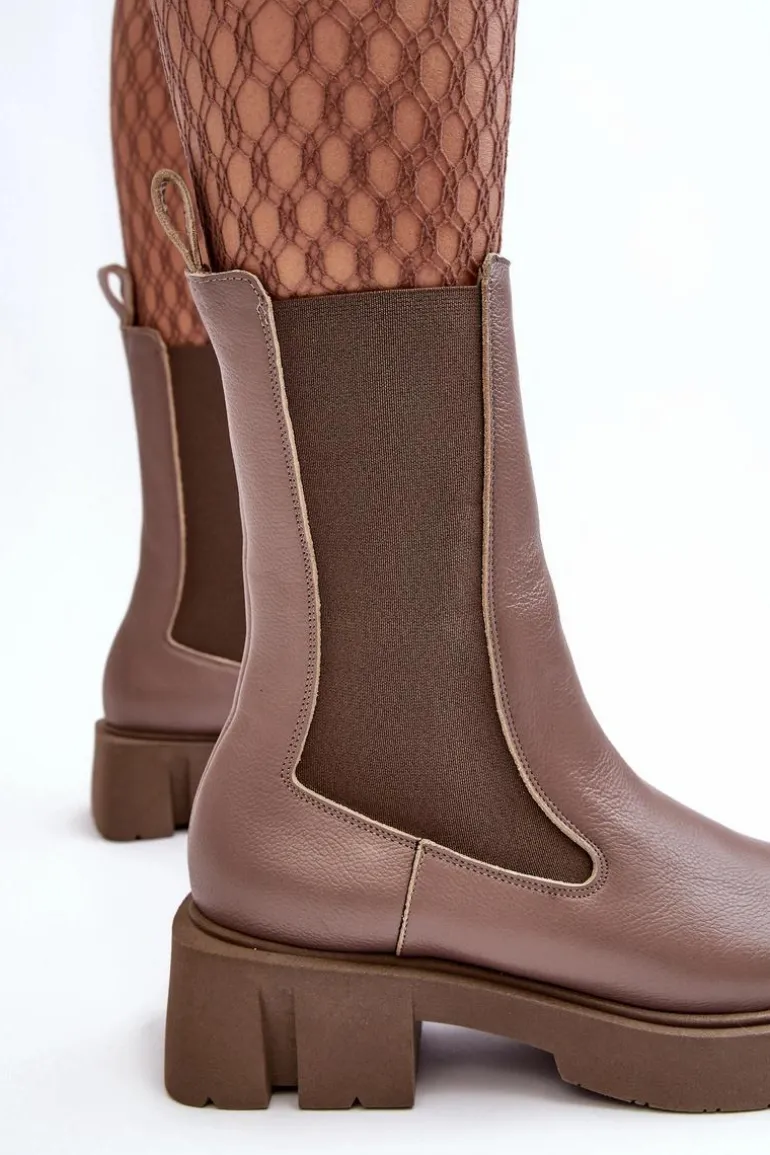 Świetne workery w stylu sztybletów zostały wykonane z naturalnej skóry. Masywna podeszwa z szerokim, płaskim obcasem zapewnia stabilność na każdym kroku. Została wykonana z gumowego tworzywa i jest antypoślizgowa. Wnętrze jest ocieplane kocem obuwniczym. Model ten jest klasycznie wsuwany. Przy wyborze rozmiaru prosimy sugerować się tabelą rozmiarów.