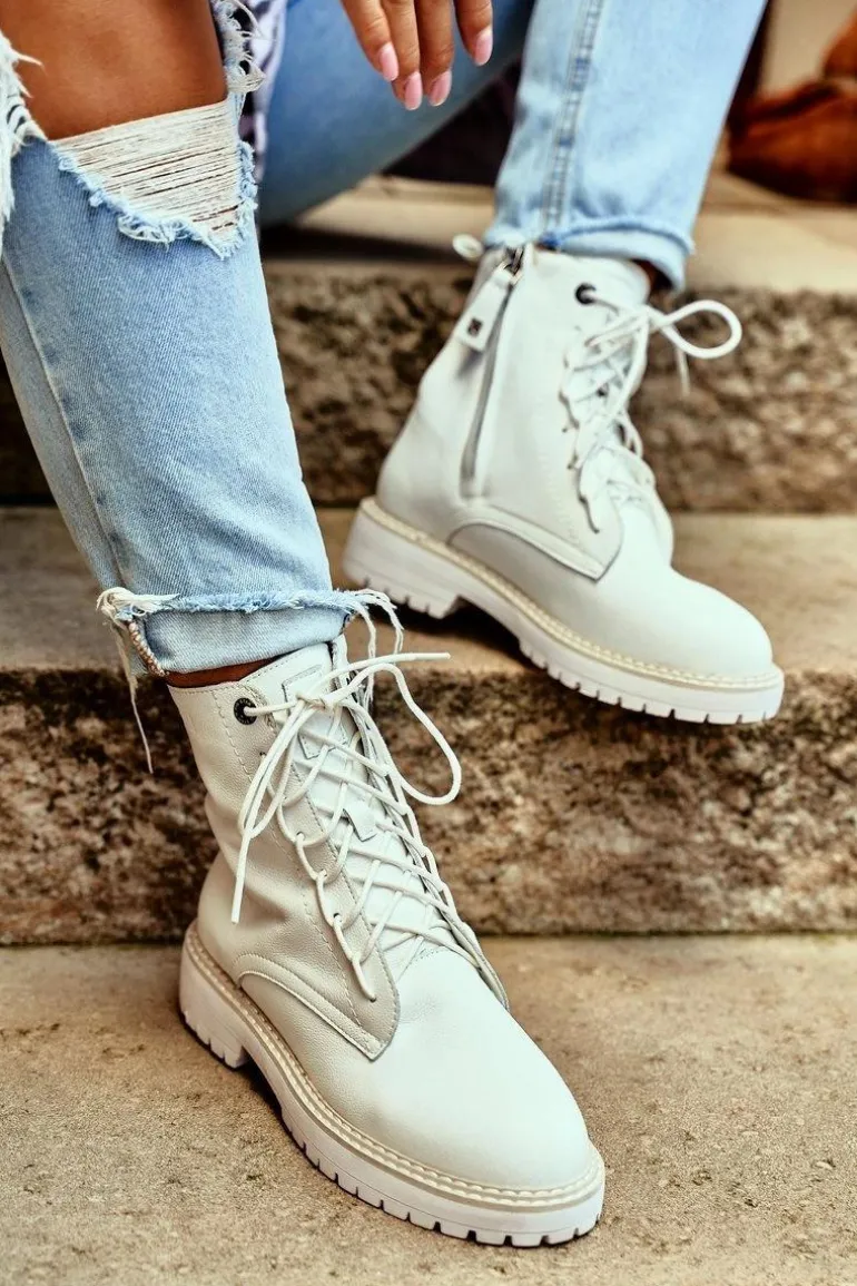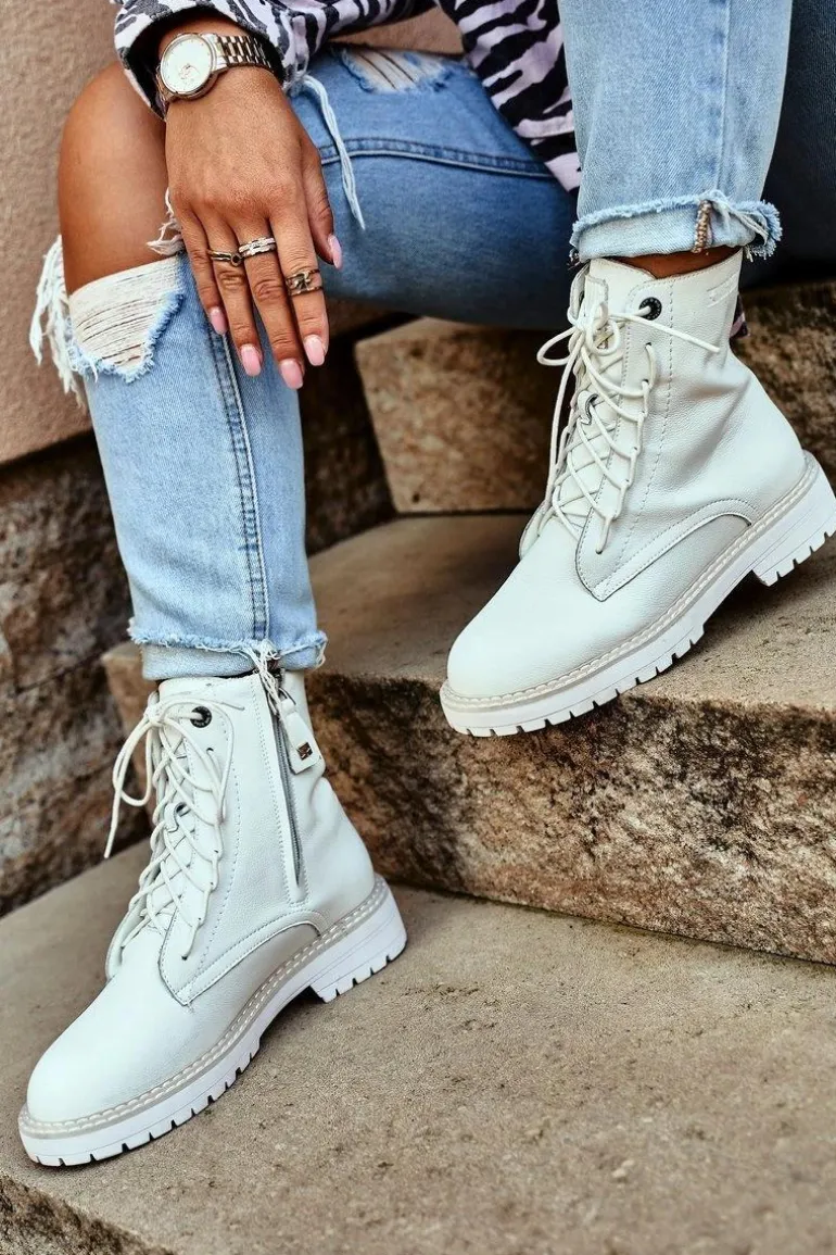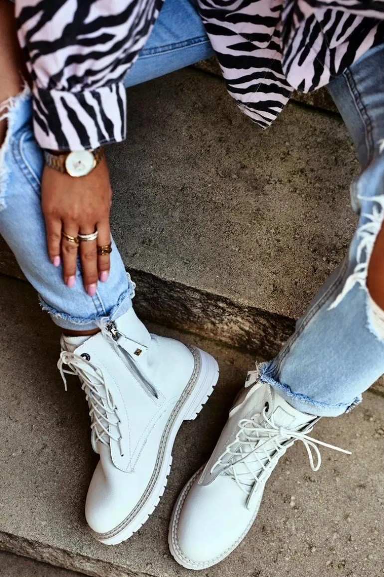 Przygotuj się na chłodniejsze dni z najnowszymi traperami firmy Big Star! Poczuj się jak stylistka modowa w tej pięknej bieli! Zewnętrzna część buta została wykonana z najwyższej jakości skóry naturalnej, która otuli Twoją stopę swoją miękkością. Wnętrze traperów wyściela tkanina. Botki można zakładać w bardzo prosty i szybki sposób, dzięki zamkowi błyskawicznemu. Aby nie odebrało to butom elegancji, producent umożliwił również możliwość wiązania butów sznurowadłami. Sama wybierzesz w jaki sposób będziesz je zakładać! Przed zimnem ochroni Cię 4-cm podeszwa. Nie znajdziesz bardziej kobiecego modelu traperów, kup już dziś! Przy wyborze rozmiaru prosimy sugerować się tabelą rozmiarów.