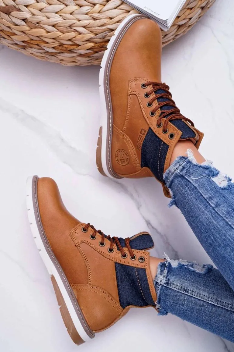 Damskie Botki Trapery Big Star Skórzane Brązowe EE274004