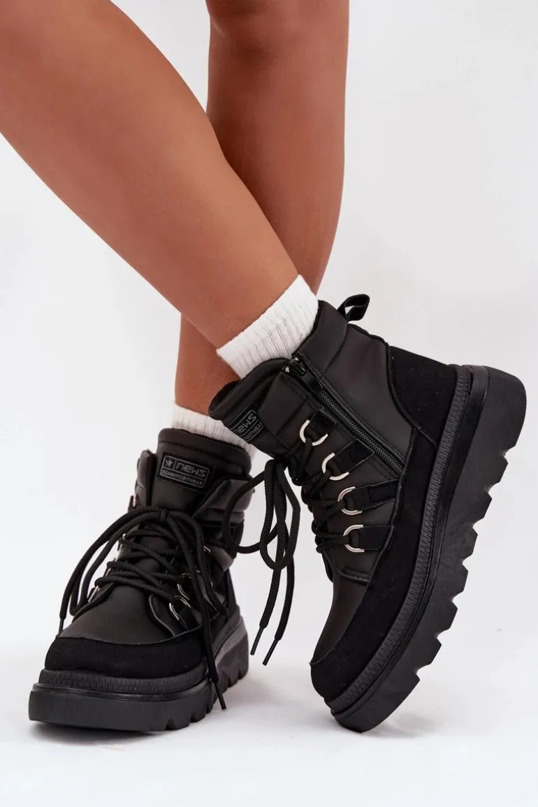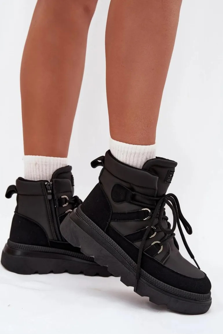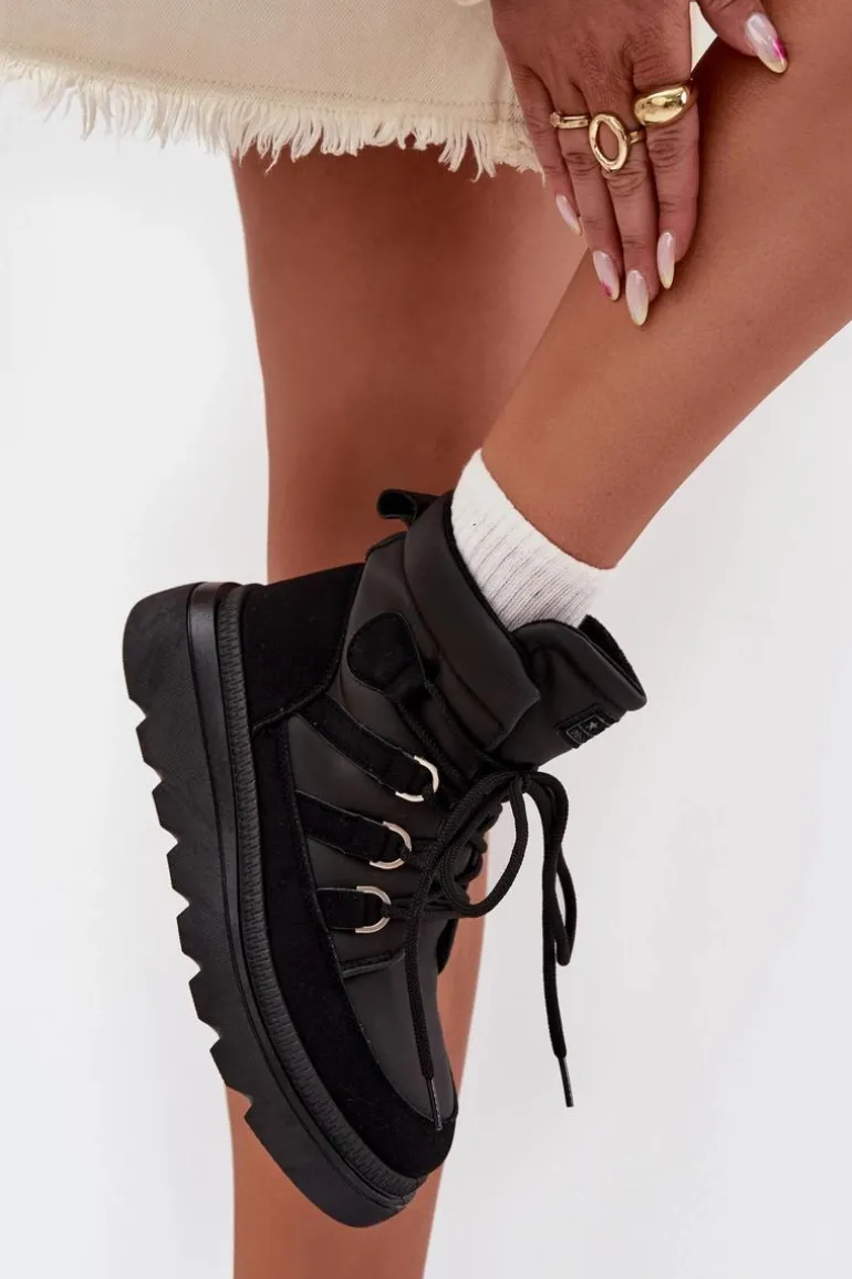 Botki damskie ocieplane to doskonały wybór na zimowe dni. Osadzone na platformie, zapewniają komfort i stabilność podczas chodzenia. Model ten wyposażony jest w sznurowanie oraz dodatkowe zapięcie na zamek, co ułatwia zakładanie i dopasowanie do stopy. Ocieplenie wewnątrz buta gwarantuje ciepło nawet w mroźne dni. Stylowy fason sprawia, że te botki będą świetnym uzupełnieniem każdej zimowej stylizacji. Przy wyborze rozmiaru prosimy sugerować się tabelą rozmiarów.