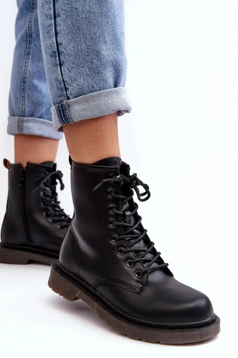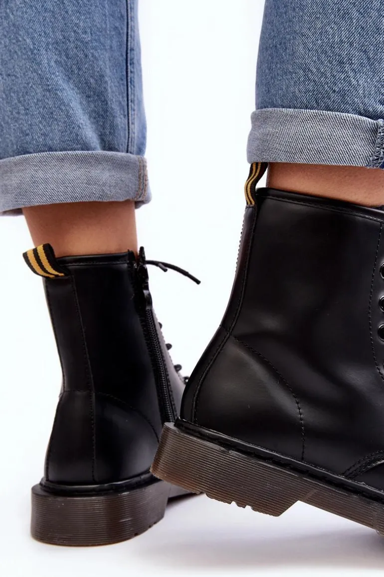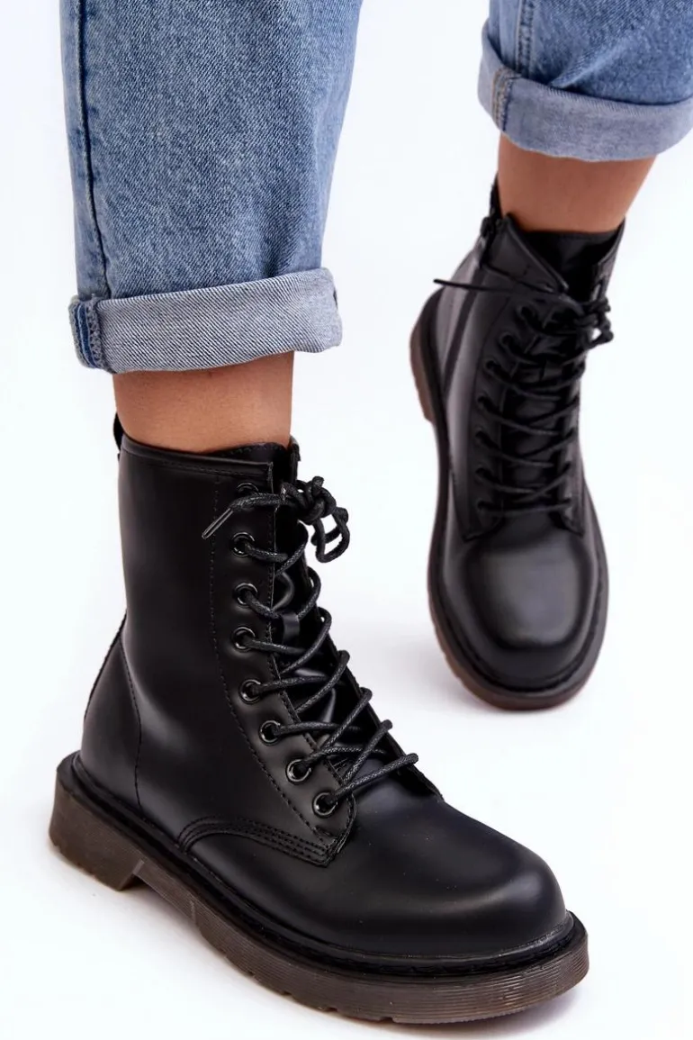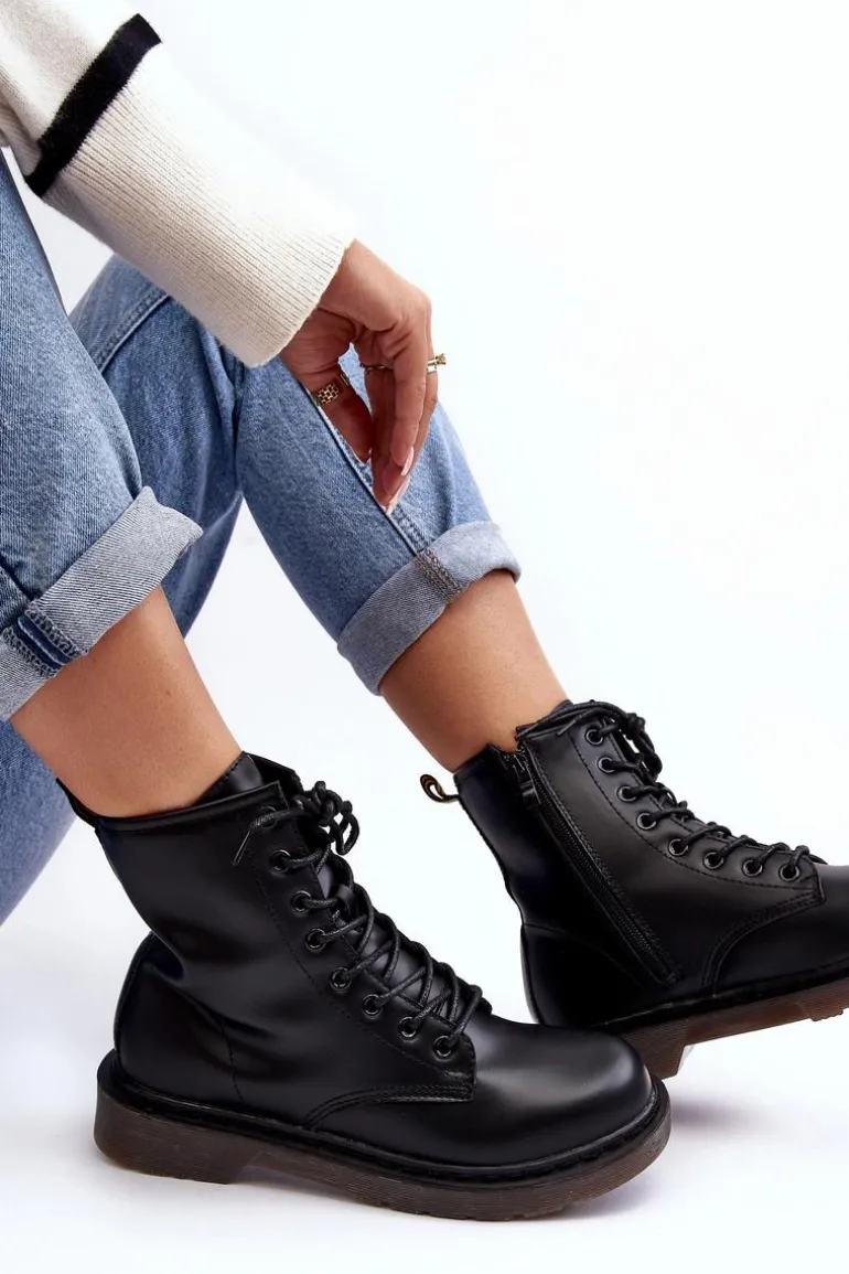 Klasyczne, damskie trapery zostały wykonane z eko skóry. Osadzone na płaskim obcasie i antypoślizgowej podeszwie. Model sznurowany z dodatkowym zapięciem na zamek. Noski zaokrąglone. Zapiętek usztywniony. Trapery nie posiadają ocieplenia. Ten klasyczny model powinien znaleźć się w Twojej szafie! Przy wyborze rozmiaru prosimy sugerować się tabelą rozmiarów.