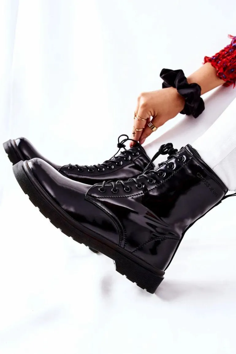 Przepiękne i modne botki marki Cross Jeans. Buty w całości wykonane ze skóry ekologicznej. Wysokie botki sięgające aż do łydek. Klasycznie sznurowane z dodatkowym suwakiem na boku. Przy wyborze rozmiaru prosimy sugerować się tabelą rozmiarów.