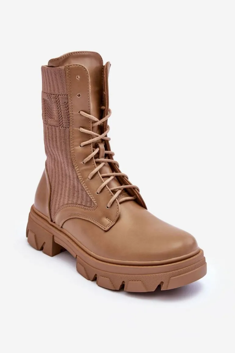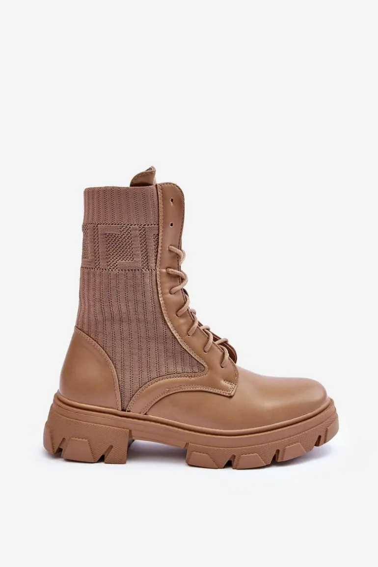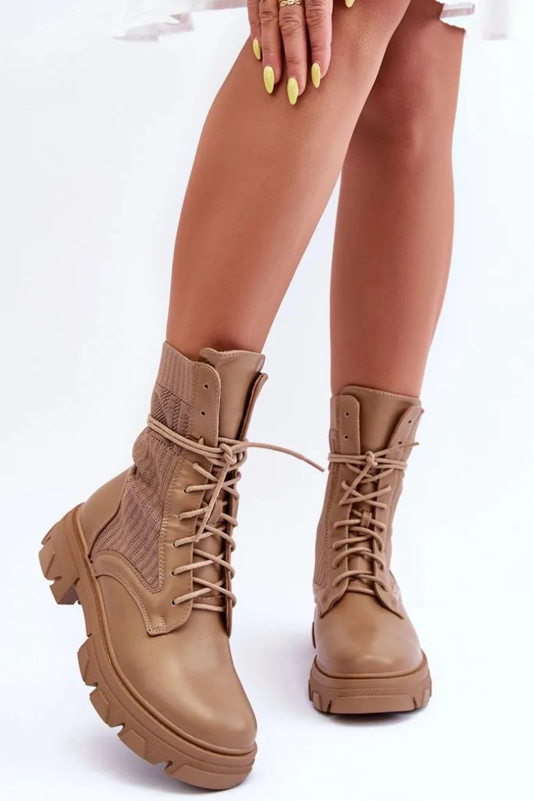 Damskie botki na płaskim, masywnym obcasie i platformie świetnie sprawdzą się do wielu stylizacji! Wykonane z połączenia elastycznej tkaniny oraz eko skóry. Model klasycznie sznurowany pozwoli na odpowiednie dopasowanie obuwia do tęgości nogi. Dodatkowo botki te posiadają usztywniany zapiętek. Materiałowa wkładka zapewni komfort podczas użytkowania. Przy wyborze rozmiaru prosimy sugerować się tabelą rozmiarów.