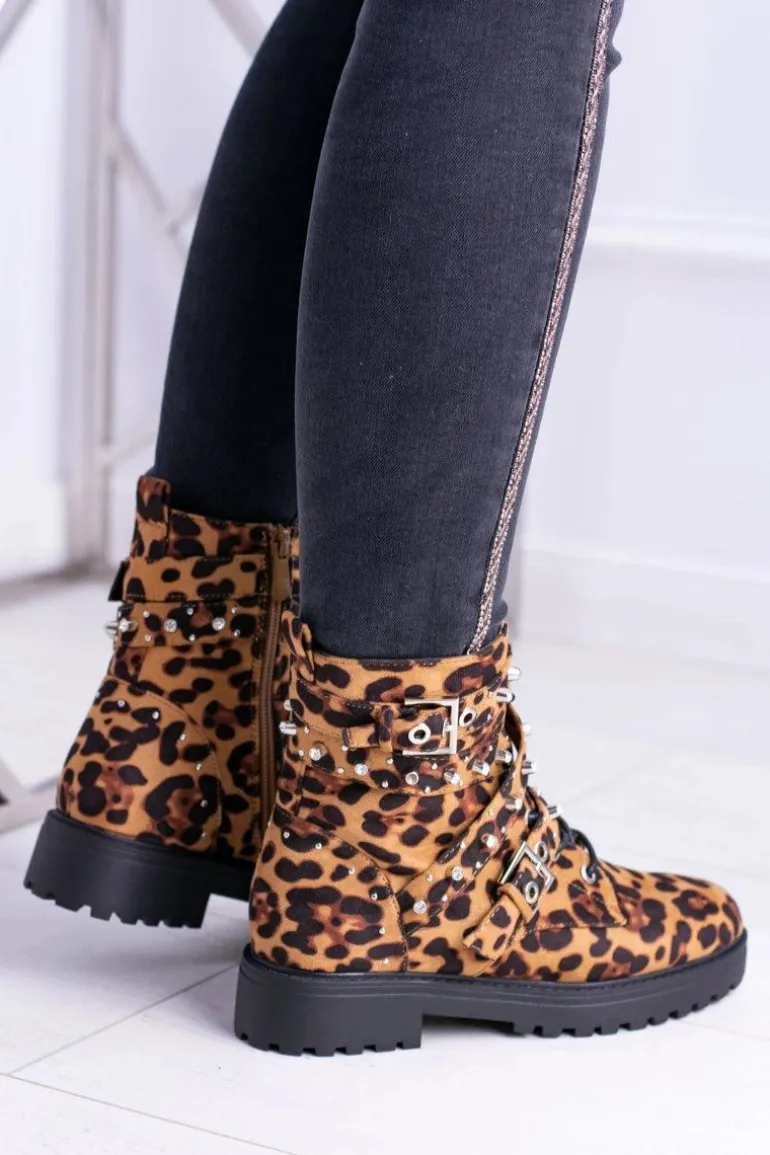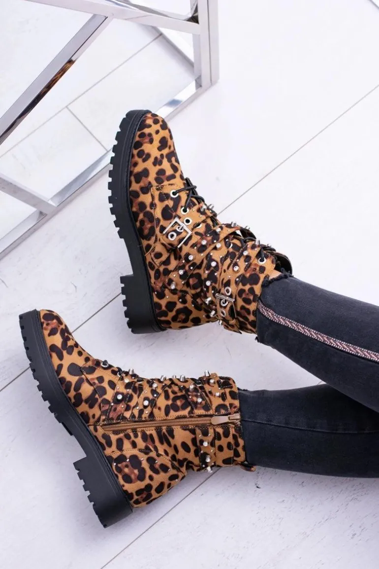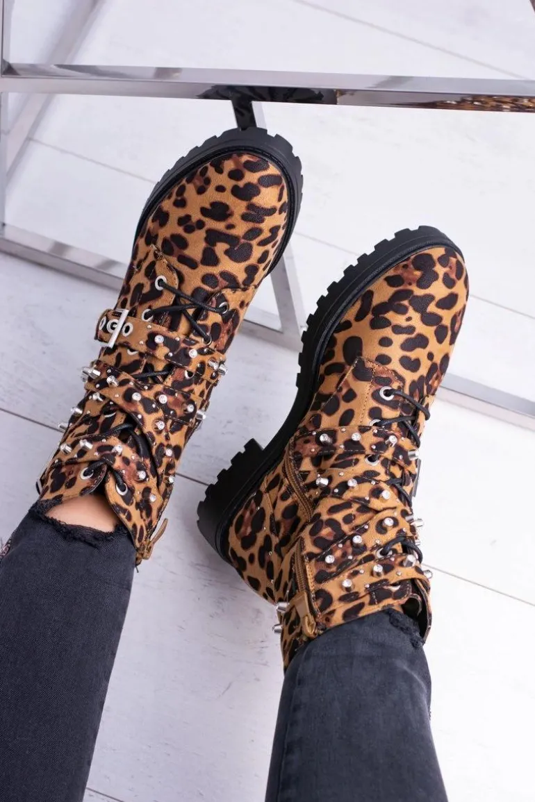 Damskie Botki Wysokie Trapery W Panterkę Albere