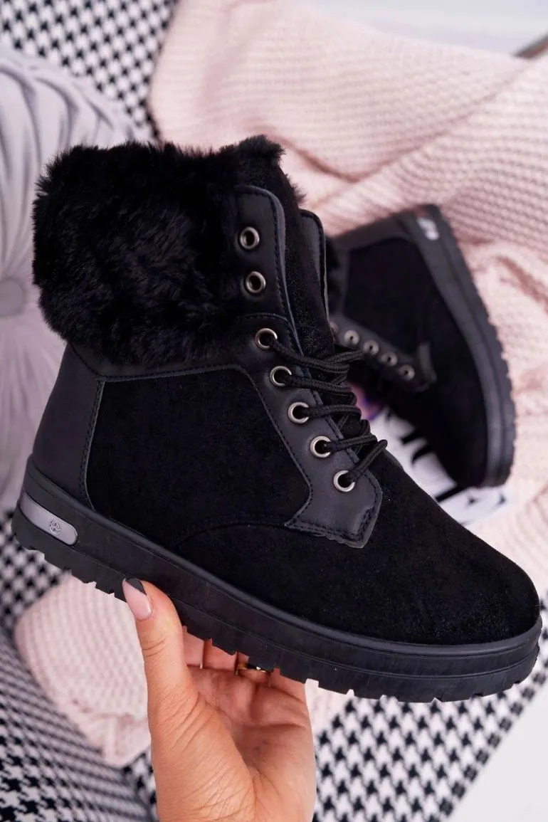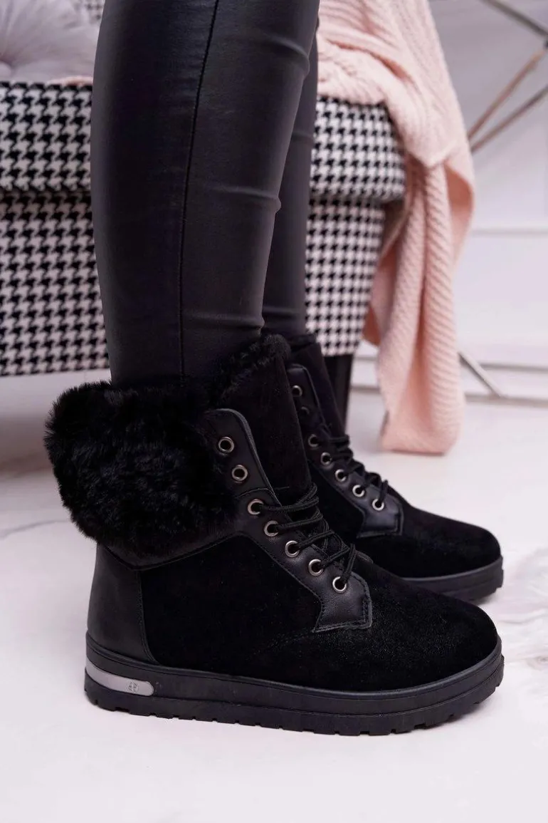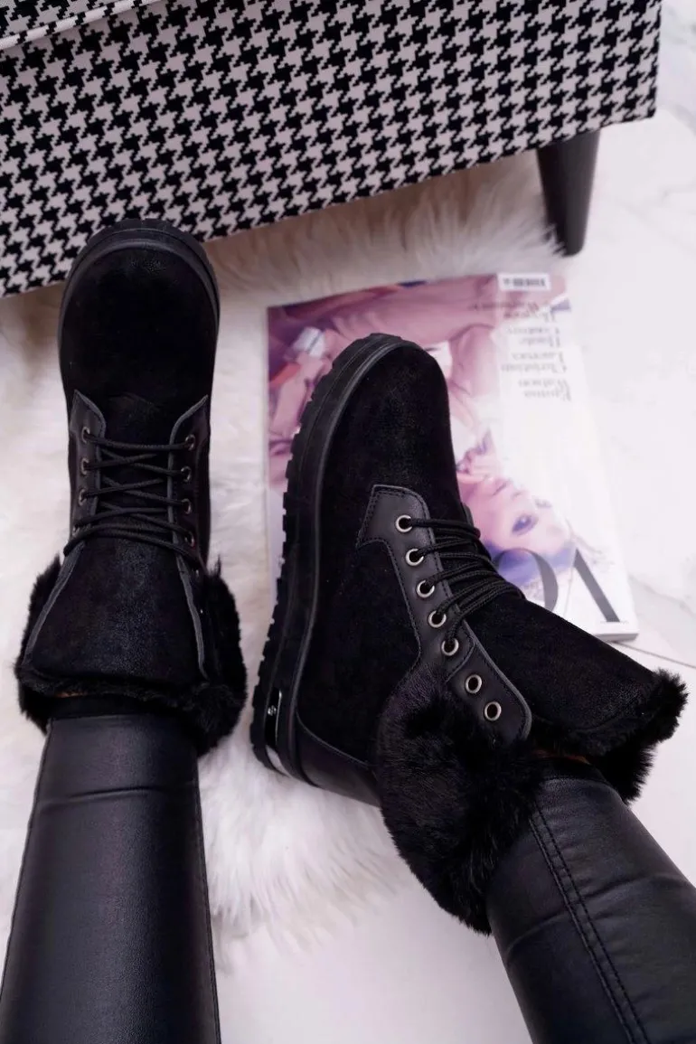 Damskie Botki Wysokie z Futerkiem Czarne Glamiso