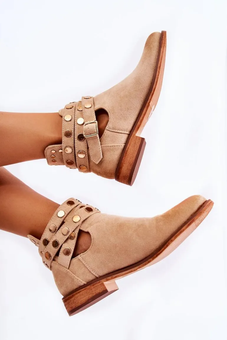 Wyjątkowe botki damskie z dżetami na paskach oraz z tyłu cholewki. Botki wykonane są z eko zamszu. Miękka wkładka z eko skóry oraz wygodny, płaski obcas zadbają o Twój komfort. Botki dopełnią wiele Twoich stylizacji! Posiadają wycięcia z boku cholewki. Podeszwa antypoślizgowa. Koniecznie sprawdź całą naszą kolekcję damskich botków! Przy wyborze rozmiaru prosimy sugerować się tabelą rozmiarów.