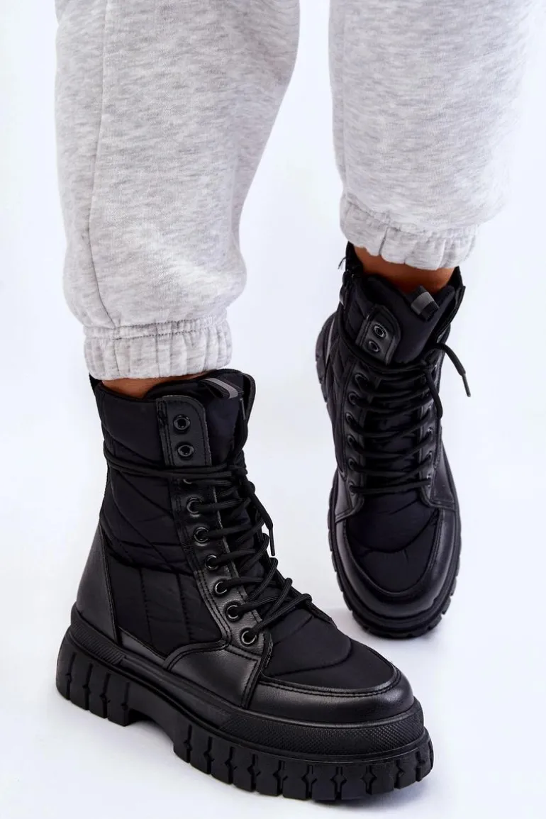 Botki Ariadna to nowość tego sezonu! Świetnie prezentują się z zimowymi stylizacjami. Cholewka jest wykonana z połączenia tkaniny oraz skóry ekologicznej. Wnętrze zostało wykończone ciepłym materiałem Przy wyborze rozmiaru prosimy sugerować się tabelą rozmiarów.