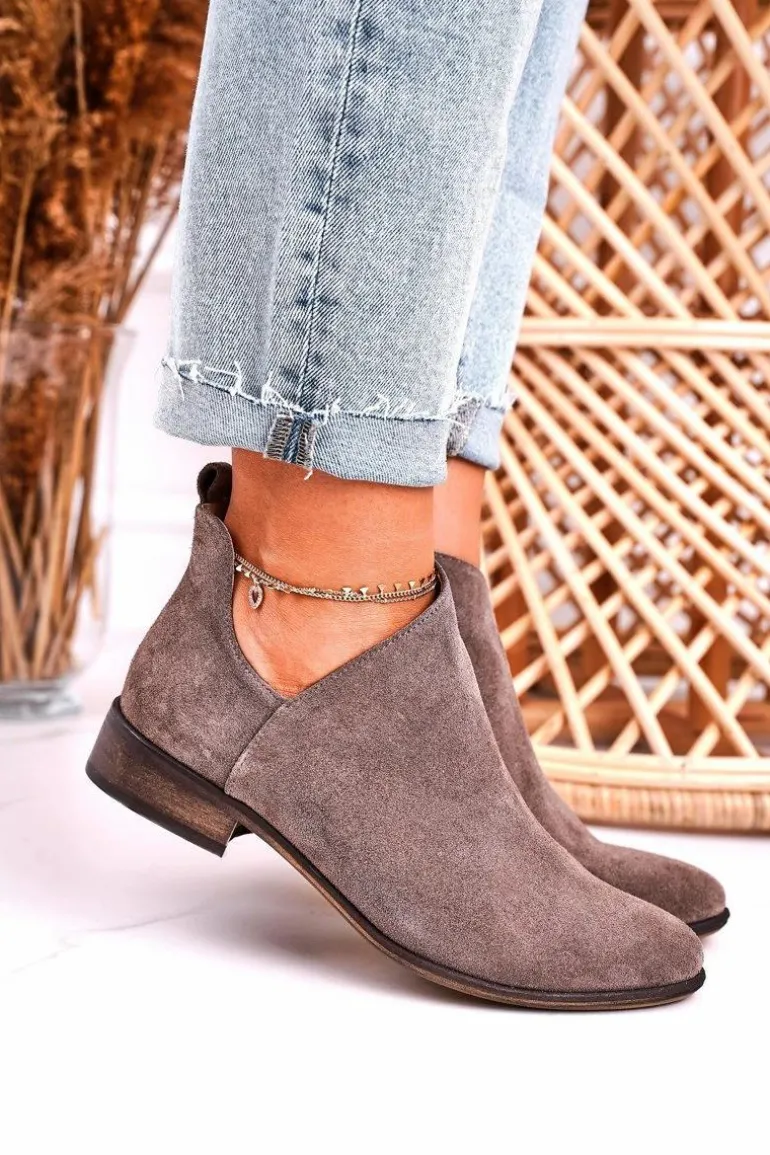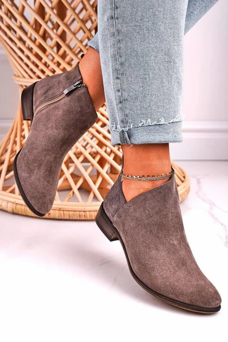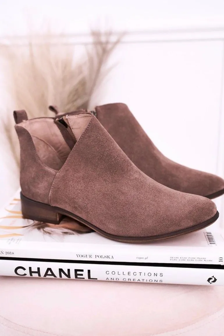 Damskie Botki Z Wycięciem Zamszowe Brązowe Clarence