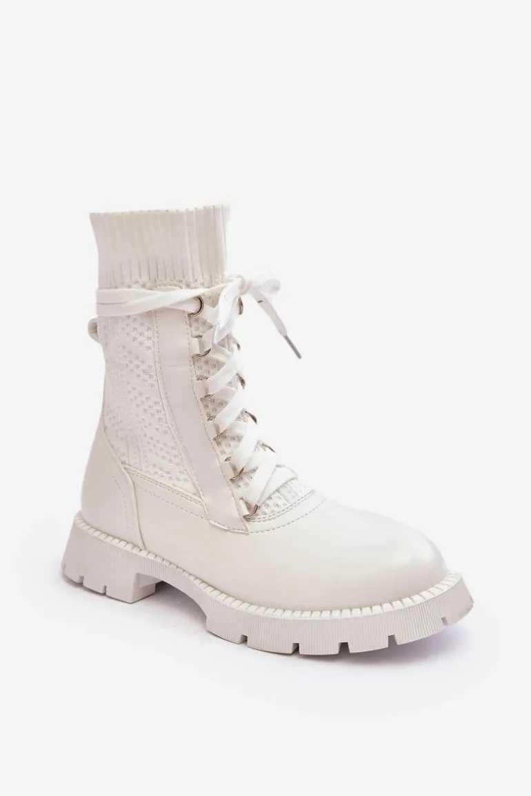 Modne botki damskie zostały wykonane z połączenia eko skóry I materiału tekstylnego. Model wsuwany oraz dodatkowo posiada sznurowanie. Osadzone na platformie oraz płaskim obcasie. Miękka, eko skórzana wkładka zapewni komfort podczas użytkowania. Noski zaokrąglone. Cholewka za kostkę. Koniecznie powinnaś je mieć! Przy wyborze rozmiaru prosimy sugerować się tabelą rozmiarów.