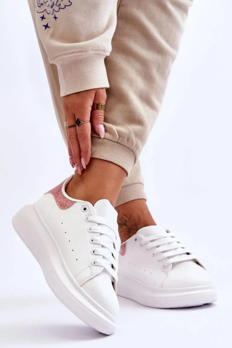 Damskie Buty Sportowe Na Platformie Brokatowe Biało-Różowe Eliso
