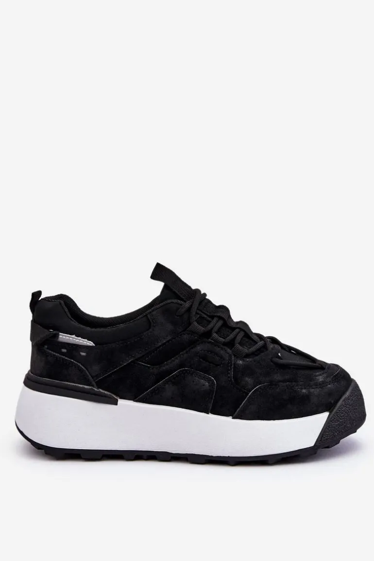Świetne, damskie buty sportowe zostały osadzone na masywnej platformie, która delikatnie uniesie Twoją sylwetkę. Model ten posiada klasyczne sznurowanie. Dodatkowo zapiętek jest usztywniany, a z tyłu cholewki znajduje się odblaskowy element. Wkładka w tych butach jest materiałowa oraz wymienna. Przy wyborze rozmiaru prosimy kierować się tabelą rozmiarów.