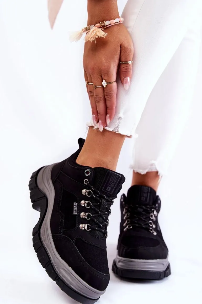 Damskie buty trekkingowe od polskiej marki Big Star z niską cholewką. Wykonane z wysokiej jakości materiałów ekologicznych. Model ten posiada solidne sznurowanie. Wkładka MEMORY FOAM SYSTEM zapamiętuje kształt stopy, zapewnia doskonałe dopasowanie oraz absorbuje wstrząsy. Dodatkowo jest odporna na odkształcenia oraz pozwala na odparowywanie wilgoci i regulacje temperatury. Usztywniany zapiętek zapewni stabilizację stopy. Ocieplone w środku kocem obuwniczym. Przy wyborze rozmiaru prosimy sugerować się tabelą rozmiarów.