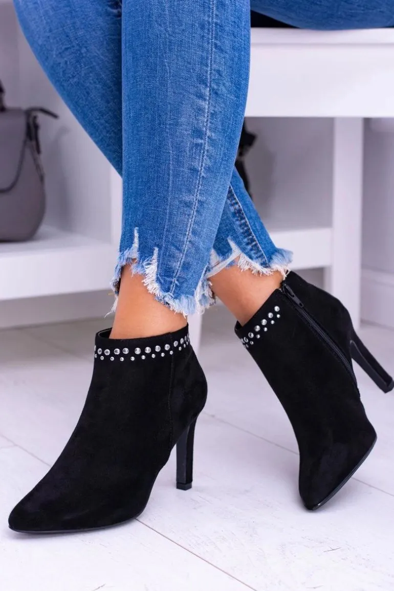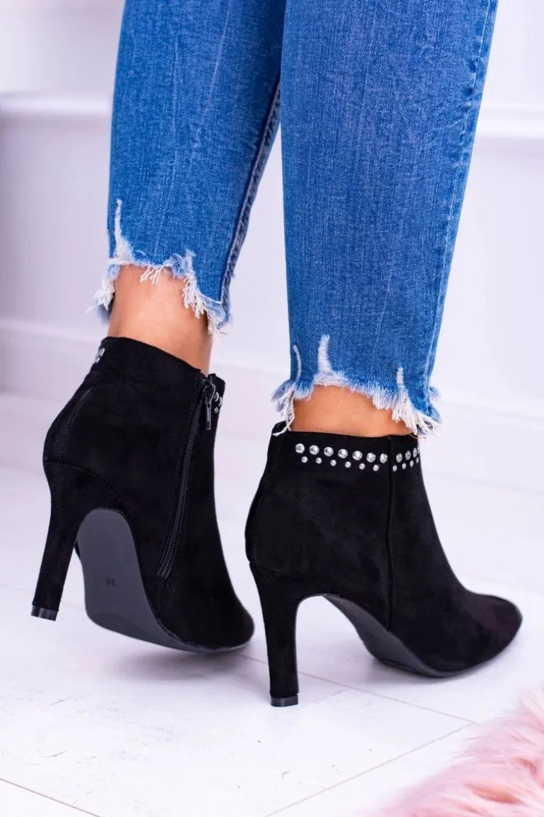 Damskie Czarne Botki Na Szpilce Nity Bemi