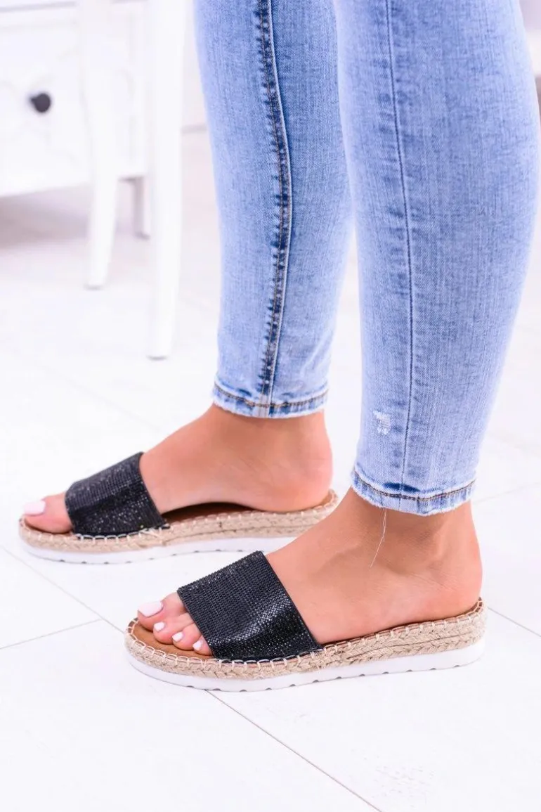 Damskie Czarne Klapki Lu Boo Cyrkonie ShineMadam