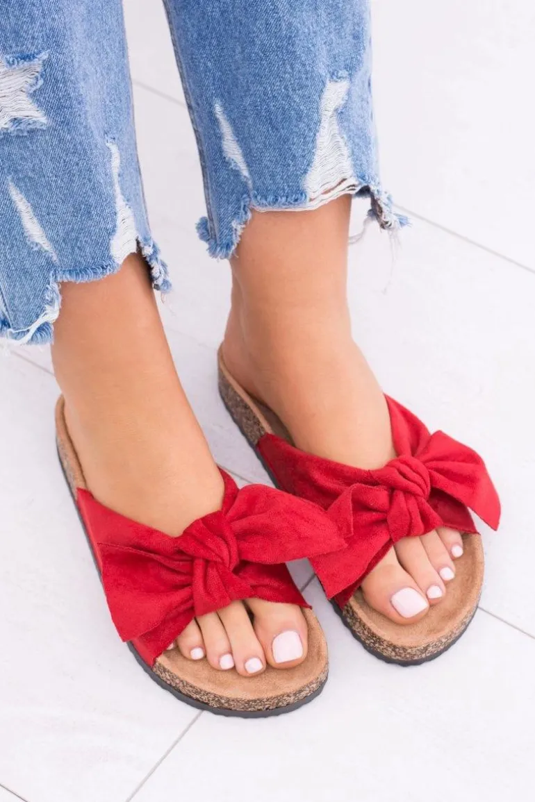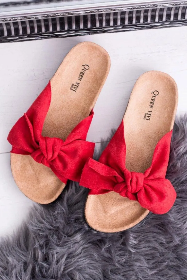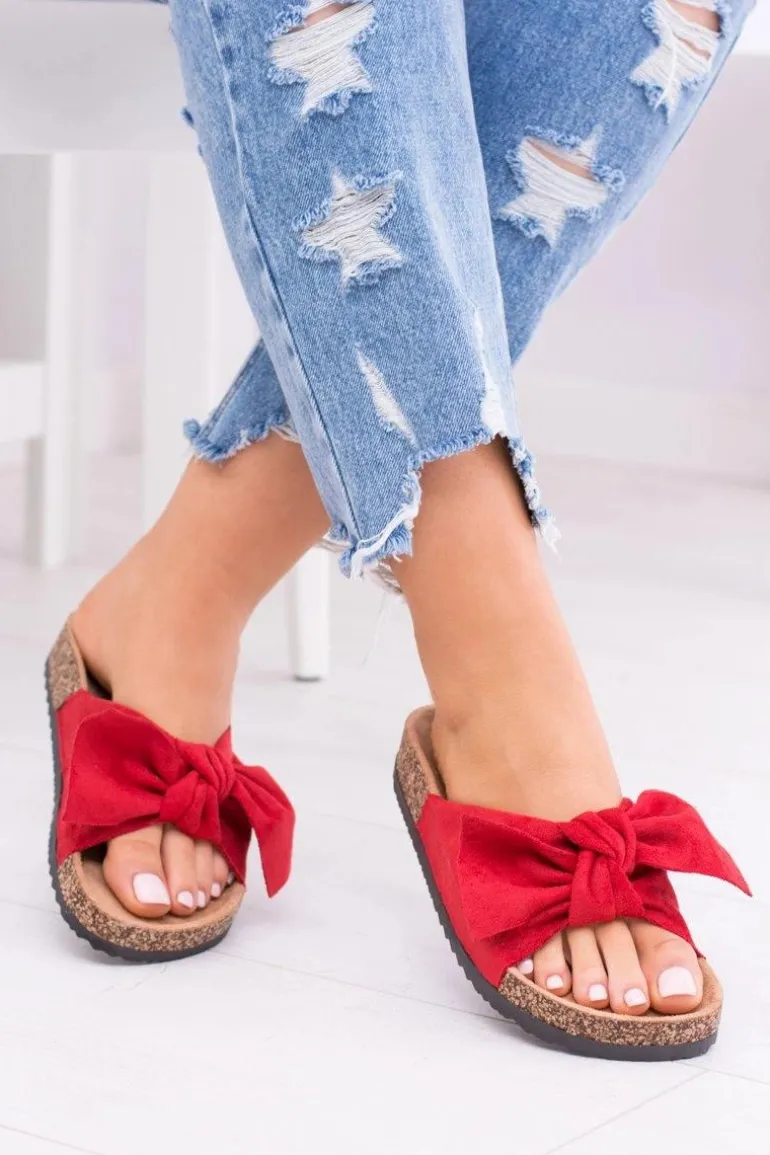 Damskie Czerwone Klapki Na Korku Kokarda Dominica