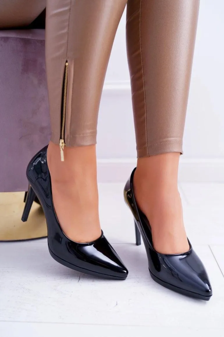 Damskie Czółenka Szpilki Sergio Leone Czarne Lakierowane Misawu