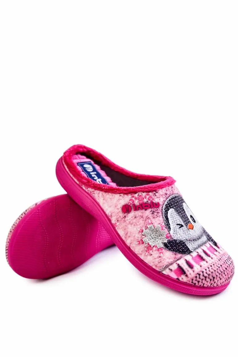 Damskie Domowe Klapki Papcie Pingwiny Inblu EC-81-023 Różowe