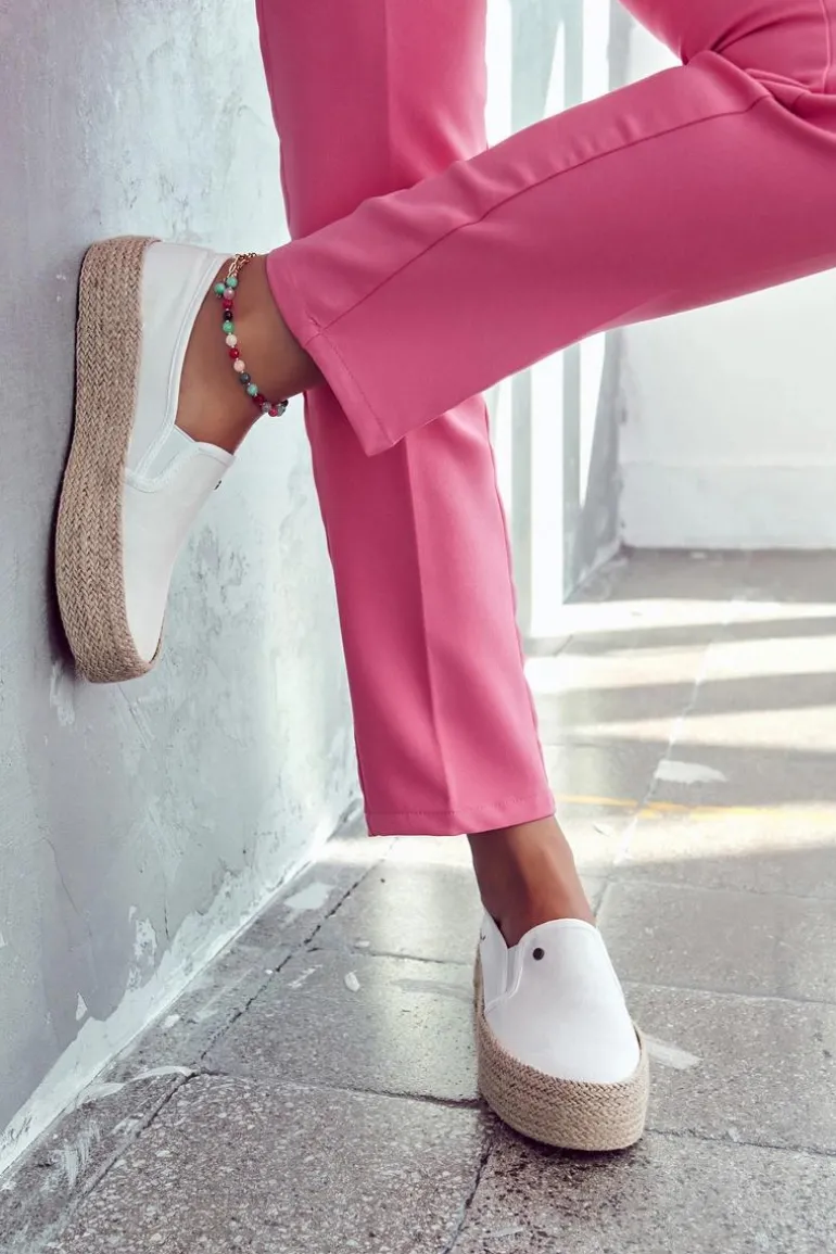 Cudowne espadryle z masywną, plecioną platformą i antypoślizgową podeszwą. Wykonane z materiału tekstylnego. Posiadają zaokrąglony nosek oraz ozdobny element na cholewce z logo marki Cross Jeans. Świetnie sprawdzą się w stylizacjach boho. Miękka wkładka zadba o Twój komfort podczas całodniowego użytkowania. Espadryle posiadają także usztywniany zapiętek. Podczas wyboru rozmiaru prosimy sugerować się tabelą rozmiarów.