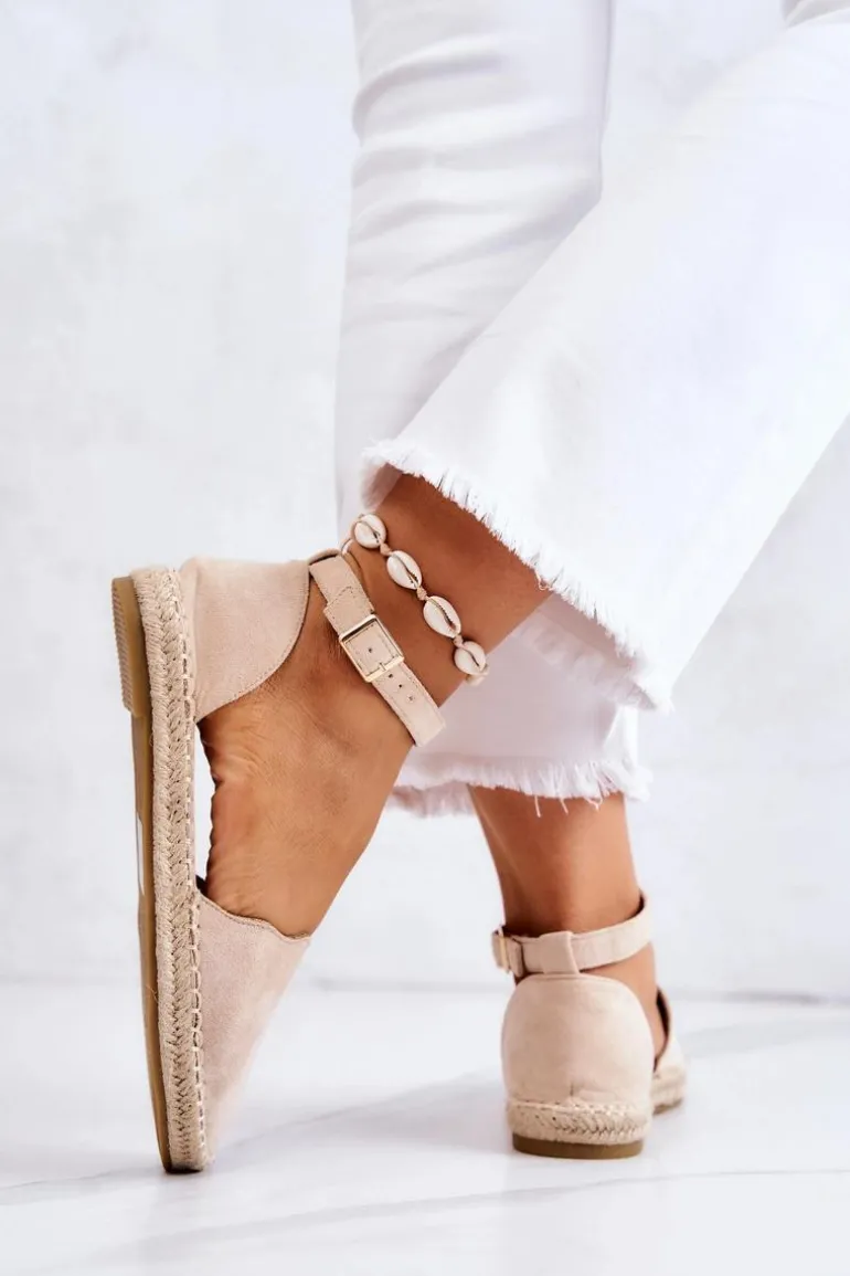 Espadryle wykonane z eko zamszu z falistym wykończeniem. Miękka, eko skórzana wkładka pozwoli na komfortowe użytkowanie butów każdego dnia. Nosek zaokrąglony. Buty niezwykle lekkie i wygodne. Zapinane na regulowany pasek ze sprzączką. Platforma z płaskim obcasem wykonana z gumowego tworzywa ozdobiona jutowym warkoczem. Idealny model na lato, który powinnaś mieć! Podczas wyboru rozmiaru prosimy sugerować się tabelą rozmiarów.
